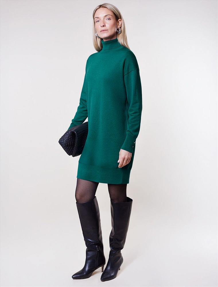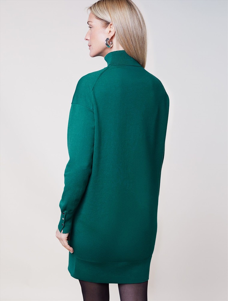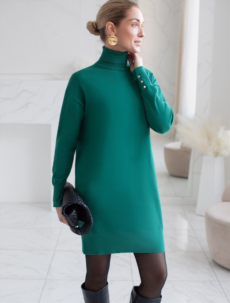 Размер товара на первом фото: 42 Платье тонкой вязки выполнено из хлопка. Лаконичная модель с высоким воротом как у водолазки дополнена манжетами с золотистыми пуговицами. Изделие свободно сидит по фигуре и не сковывает движений. Мягкая пряжа очень приятная к телу не колется и сохраняет тепло при этом не перегревая.