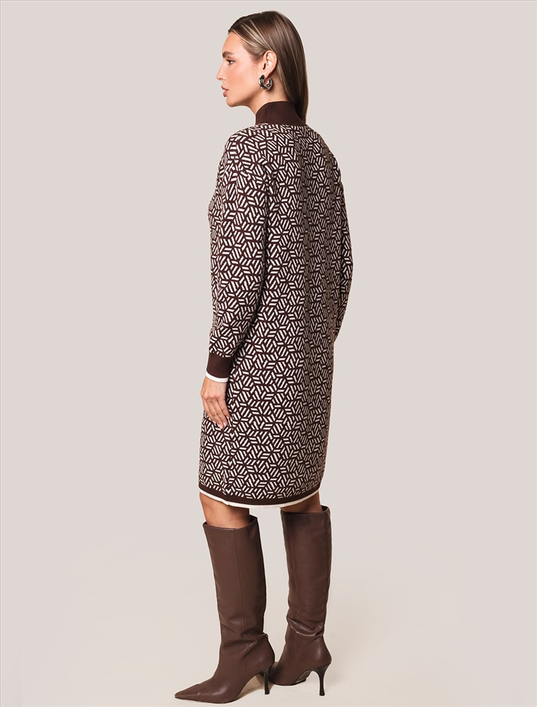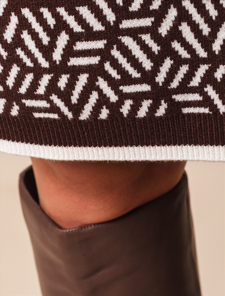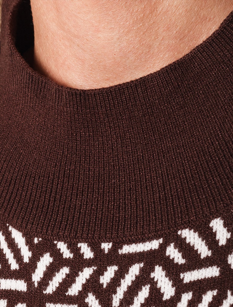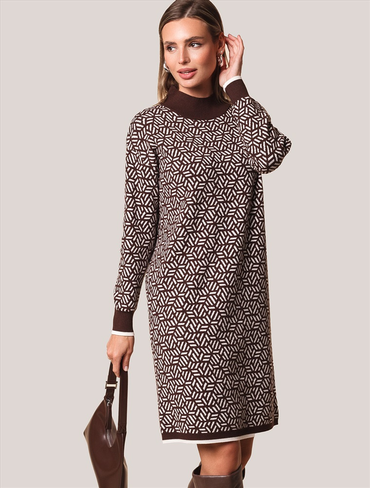 Параметры модели на первом фото: Рост 170, бюст 89, талия 63, бедра 92 Платье жаккардовой вязки выполнено из мягкой пряжи на основе вискозы с добавлением кашемира. Модель свободного силуэта с высоким воротом и длинным рукавом. Нежная пряжа очень комфортно ощущается на теле, сохраняя оптимальное тепло при этом не перегревая. Совет стилиста: жаккардовое платье отличная инвестиция в базовый гардероб, которая поможет создать дорогие образы. Носите с высокими сапогами удлиняя силуэт или плотными колготками.