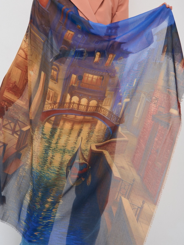 Размер: 130 x 130 cм Состав: Вискоза, Хлопок, Шелк Состав: Шелк 15% Хлопок 45% Вискоза 40% Цвет: Розовый, Синий Большой, красивый двусторонний платок с рисунком в стиле "арт-деко"и необычной текстурой ткани. Края изделия украшены бахромой. Только ручная стирка. Комментарии к товару