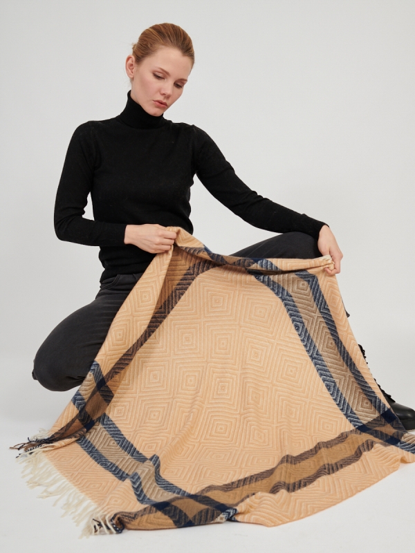 Цвет: Бежевый Большой красивый платок из мягкой, хорошо драпируемой ткани, в стиле "арт-деко". По периметру изделие украшено бахромой. Только ручная стирка.