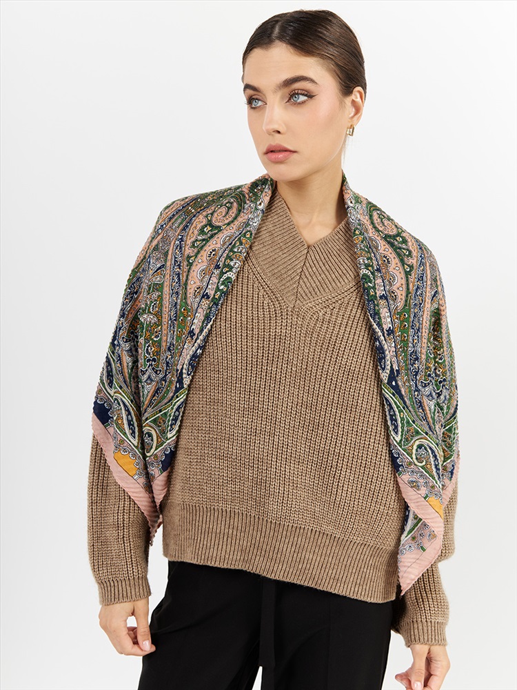 Большой, мягкий, тонкий и очень нежный двусторонний платок с рисунком. Только ручная стирка.