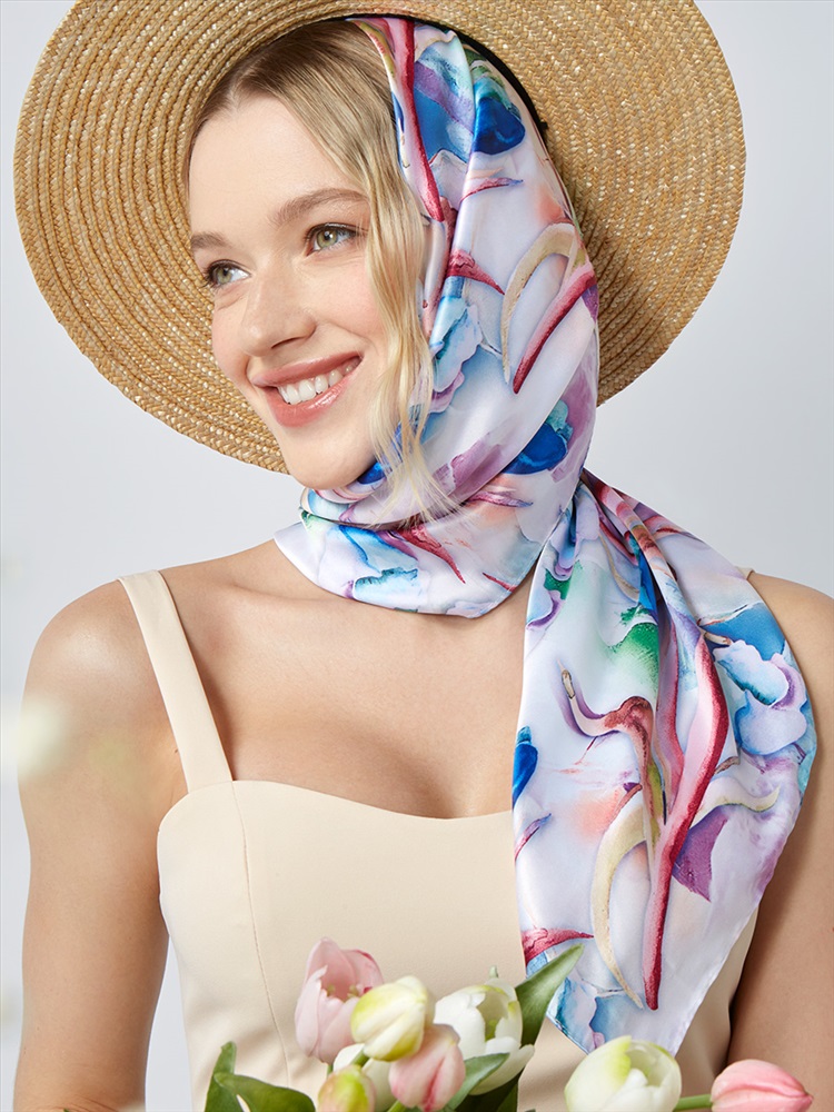 Цвет: Сиреневый Состав: 45% полиэстер, 35% вискоза, 20% шелк Состав: Вискоза, Полиэстер, Шелк Размер: 70 х 70 cм Принт: Абстракция Сезон: Осень, Весна Большой, мягкий, тонкий и очень нежный платок с рисунком. Только ручная стирка. Комментарии к товару