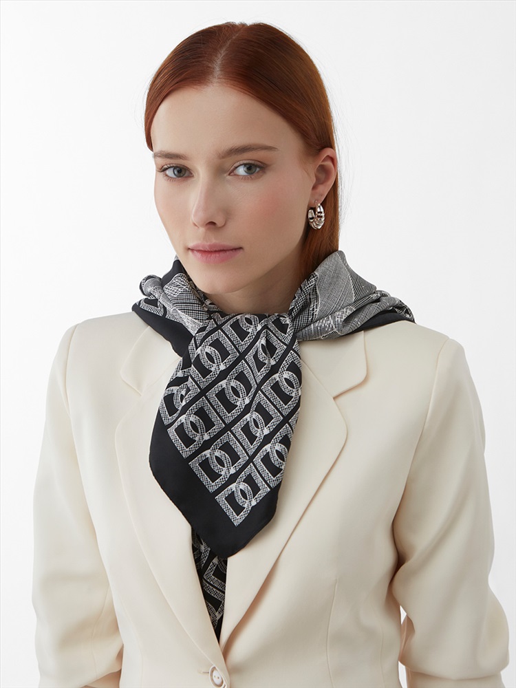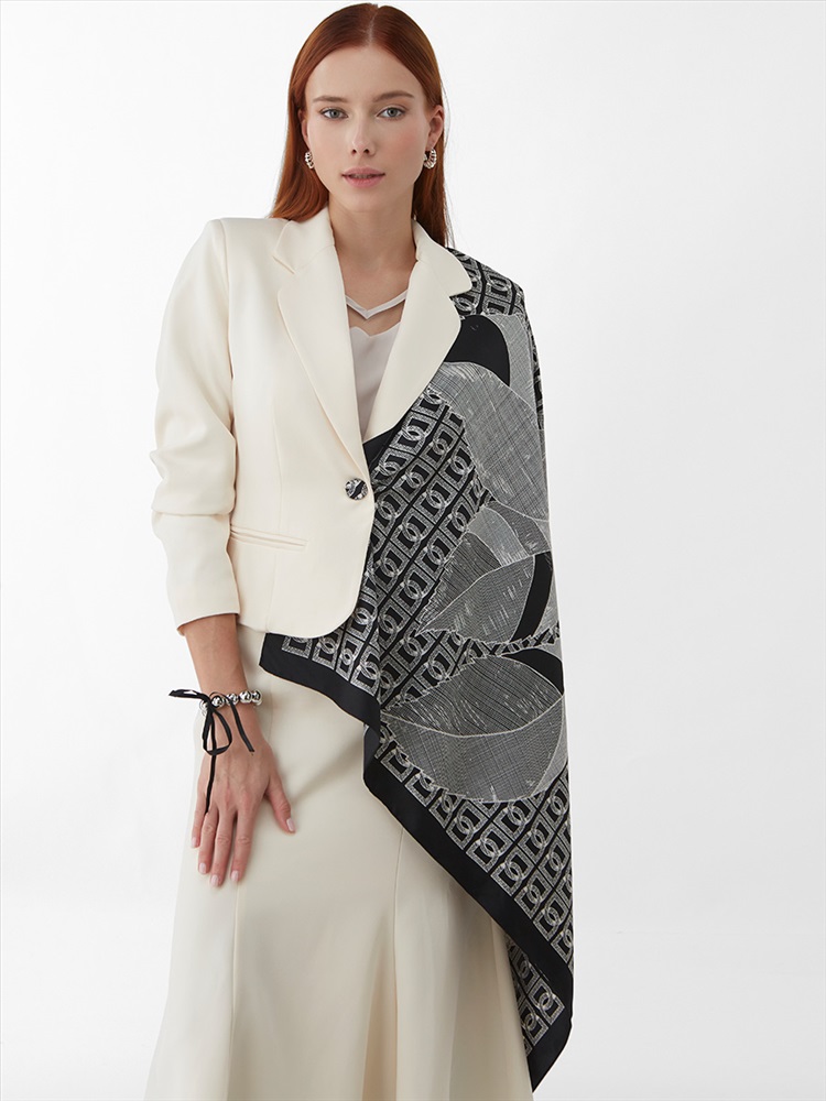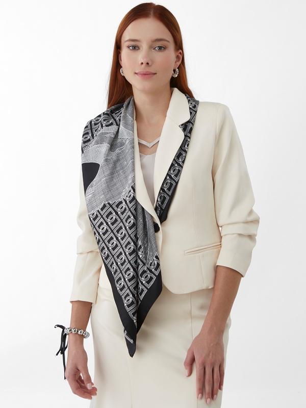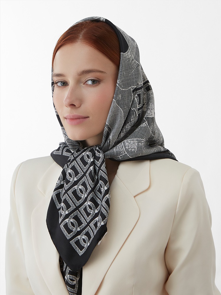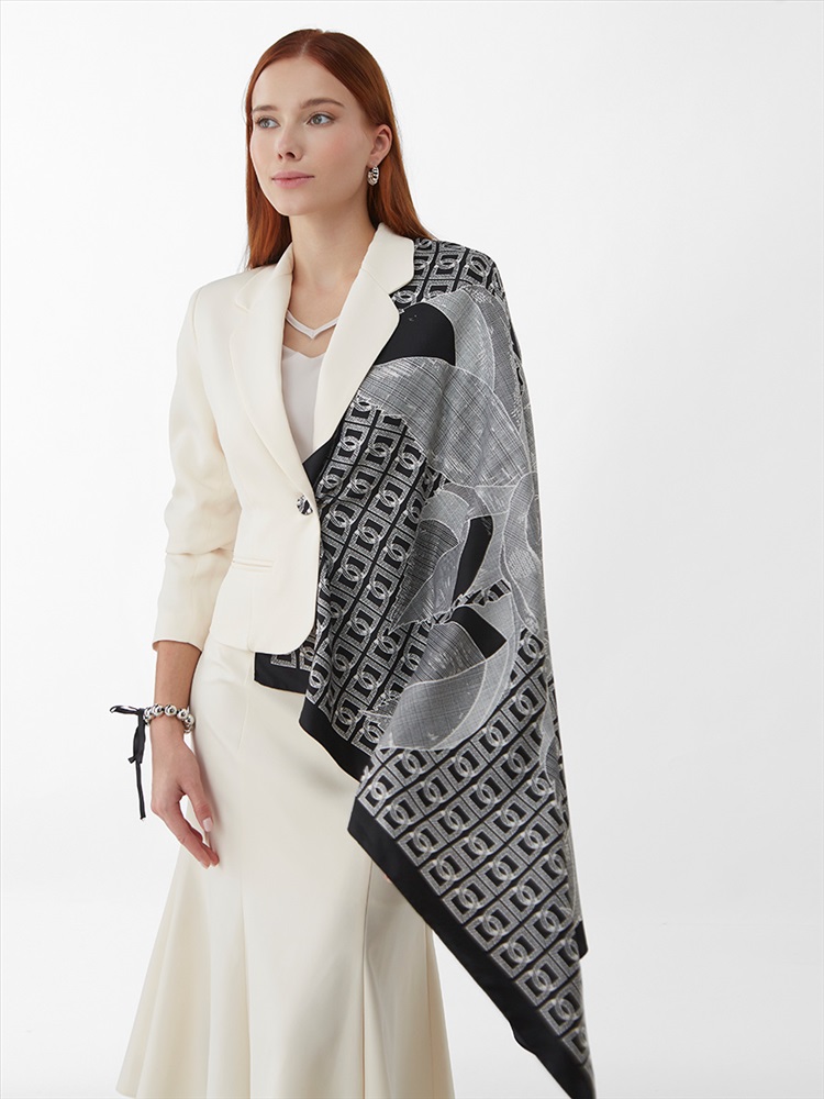 Цвет: Белый, Серебро, Серый, Черный Размер: 90 х 90 см Состав: 75% модал, 25% шелк Состав: Шелк, Модал Принт: Геометрический Сезон: Демисезон, Осень, Весна Стиль: Повседневный Большой, мягкий, тонкий и очень нежный платок с рисунком. Только ручная стирка. Комментарии к товару