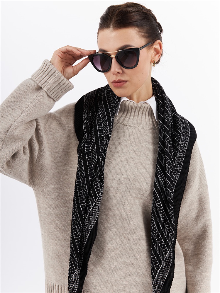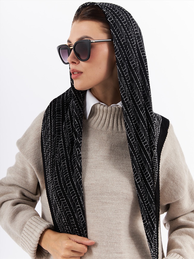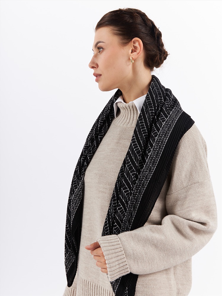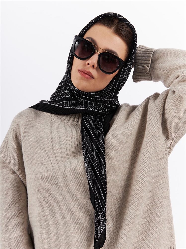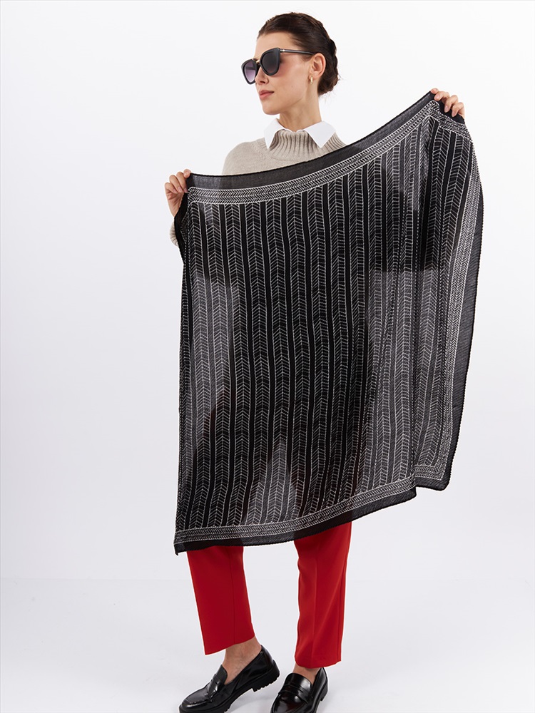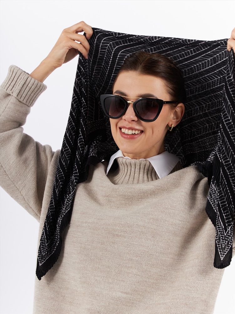 Цвет: Черный Размер: 80 х 80 см Состав: 55% вискоза, 45% полиэстер Состав: Вискоза, Полиэстер Принт: Геометрический Сезон: Демисезон, Осень, Весна Стиль: Повседневный Большой, мягкий, тонкий и очень нежный платок с рисунком. Только ручная стирка. Комментарии к товару