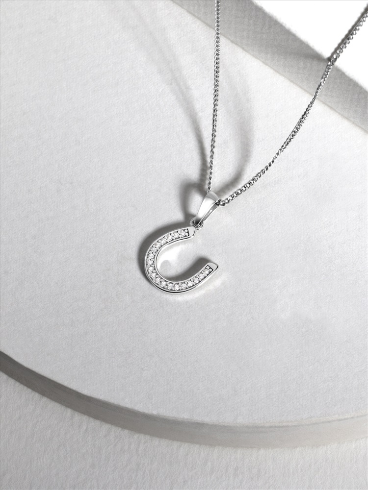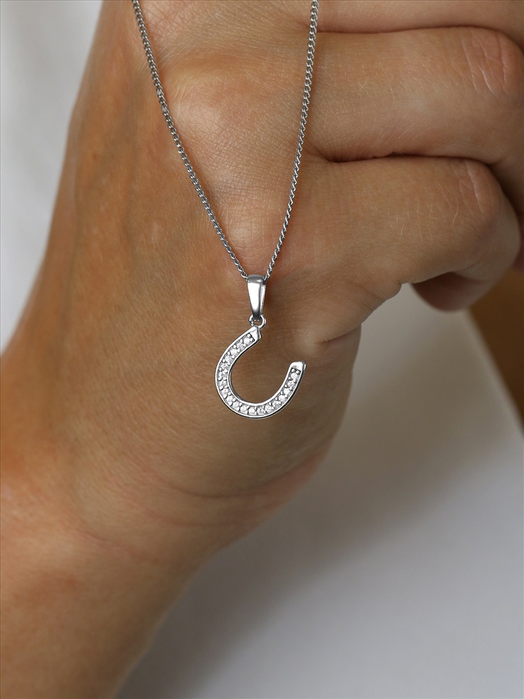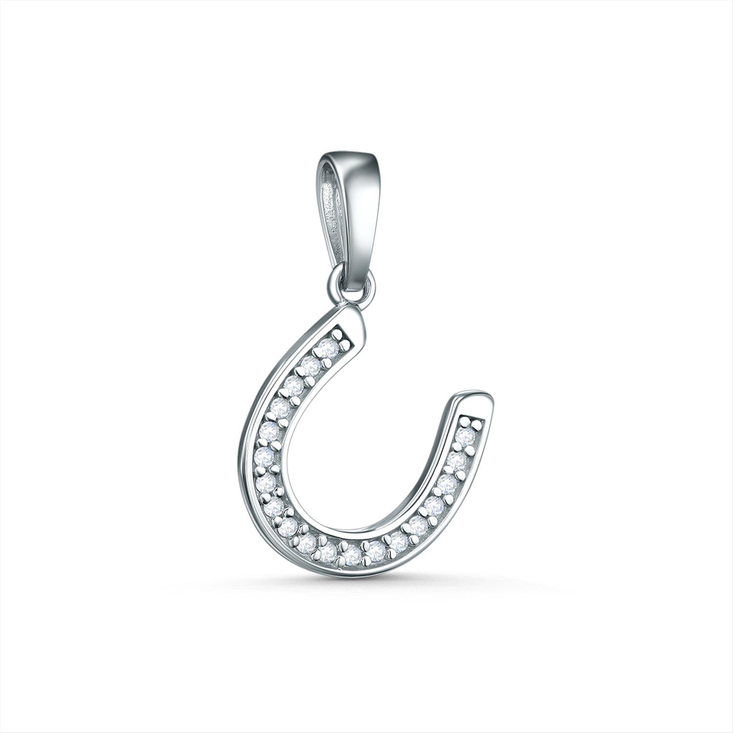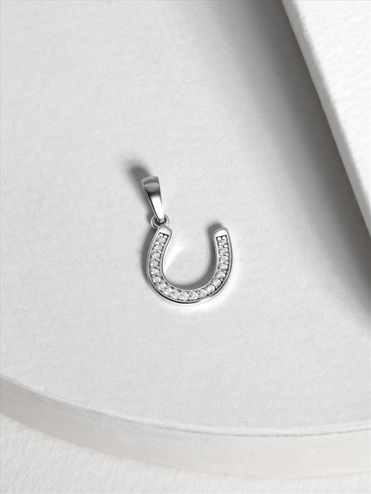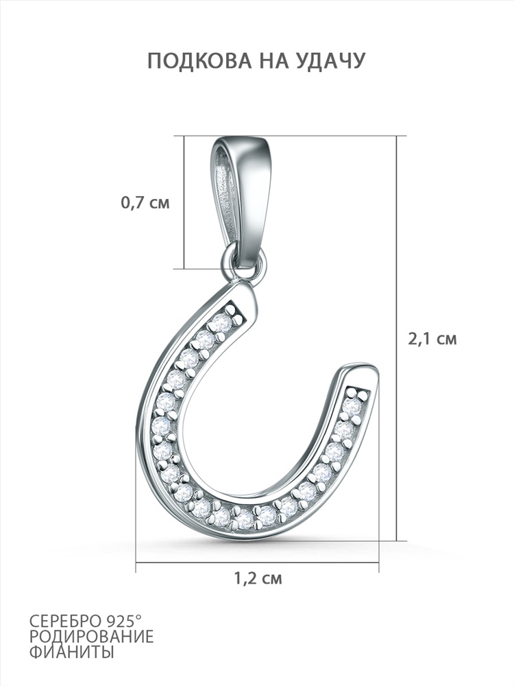 Подвеска из серебра с фианитами родированная - Подкова на удачу 3-002р200