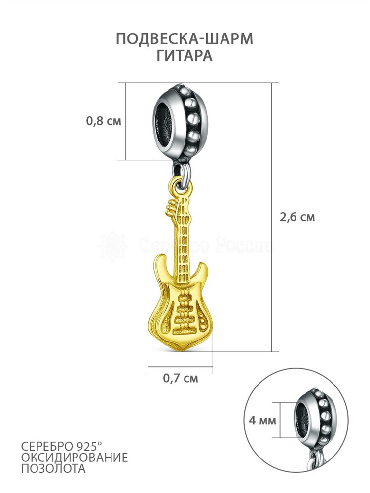 Подвеска-шарм из чернёного серебра с золочением - Гитара 620052чз
