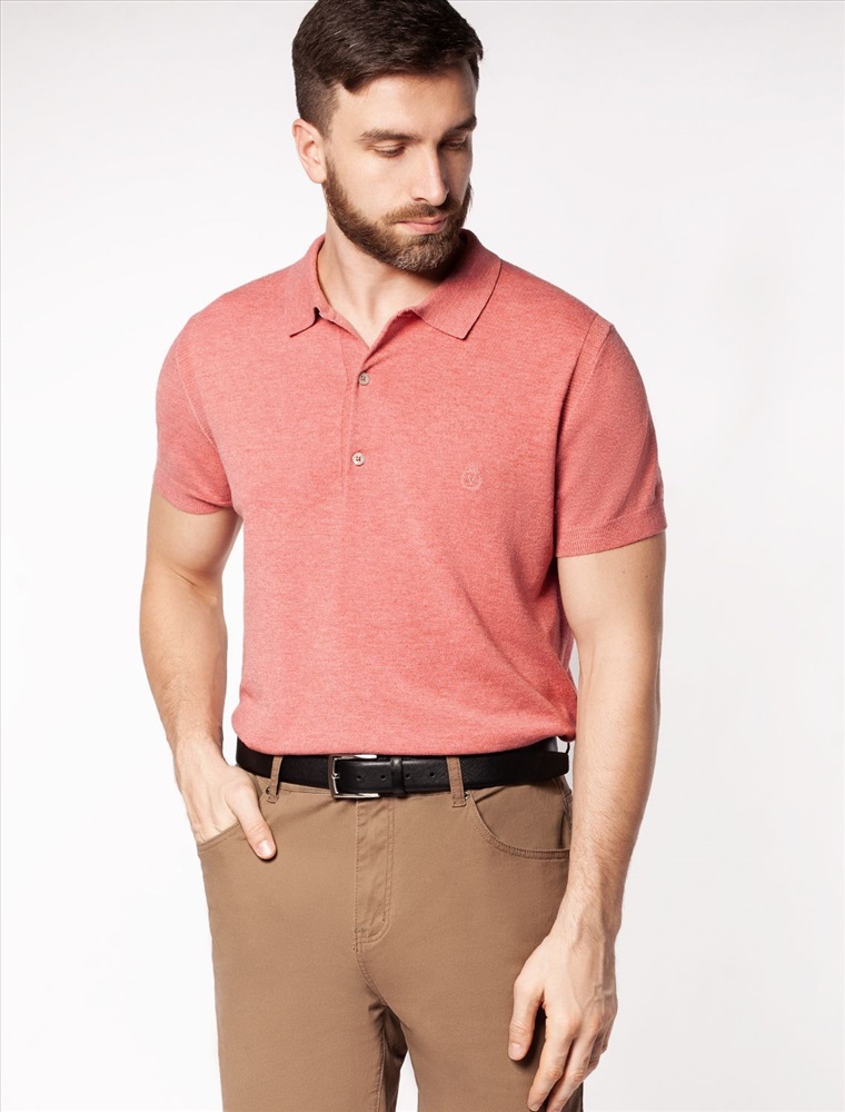 Параметры модели на первом фото: Рост 190, бюст 108, талия 87, бедра 104 Поло терракотового цвета с эффектом меланж тонкой вязки из 100% хлопка. Отборные волокна хлопка исключительно мягкие, поэтому изделие легкое и шелковистое на ощупь. Идеальное решение для весны и лета. Офисного дресс-кода и повседневного образа. Модель дополнили вышитым логотипом бренда. Комментарии к товару
