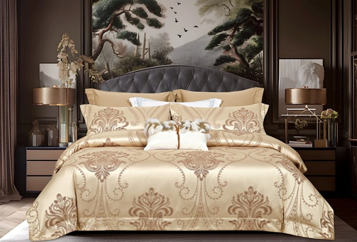 Ткань: Основной- Сатин жаккард 50% хлопок + 50% п/э; компаньон - Сатин 100% хлопок плотность 120-125гр Отделка: Наволочки и пододеяльник на молнии. Комплекты выполнены без декоративных бордюров, оборок и кружев! Размеры: 1,5 сп (2 нав), 2-х сп Евро (2 нав. 70х70), 2-х сп Евро (4 нав), Евро (4 нав), Семейный (4 нав) 1,5 сп (2 нав): пододеяльник 215х150 (на молнии) (+-2см) - 1штпростыня 215х153 (+-3см)- 1штнаволочка 70х70 (на молнии) (+-1см) - 2шт 2-х сп Евро (4 нав): пододеяльник 215х180 (на молнии) (+-2см) - 1штпростыня 240х220 (+-3см) - 1штнаволочка 70х70 (на молнии) (+-1см) - 2штнаволочка 70х50 (на молнии) (+-1см) - 2шт Евро (4 нав): пододеяльник 220х200 (на молнии) (+-2см) - 1штпростыня 240х220 (+-3см) - 1штнаволочка 70х70 (на молнии) (+-1см) - 2штнаволочка 70х50 (на молнии) (+-1см) - 2шт Семейный (4 нав): пододеяльник 215х150 ( на молнии) (+-2см) - 2штпростыня 240х220 (+-3см) - 1штнаволочка 70х70 (на молнии) (+-1см) - 2штнаволочка 70х50 (на молнии) (+-1см) - 2шт Внимание! Цена зависит от размера
