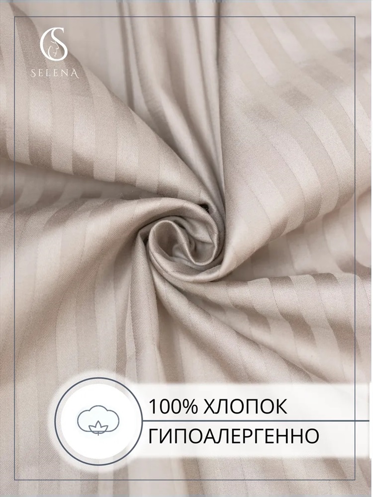 Простыня на резинке 140х200х30 (см) (страйп-сатин - 100% хлопок) ПЕСОЧНЫЙ