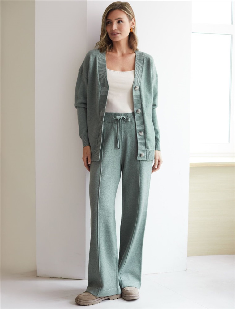 Размер товара на первом фото: 42 Брюки свободного силуэта выполнены из мягкой пряжи с кашемиром. Вязаный кант вертикально проходящий по всему изделию, визуально стройнит и вытягивает силуэт. Изделие дополнено боковыми карманами и регулирующим шнуром на поясе. Мягкая пряжа очень приятная к телу, поддержит комфорт на протяжении всего дня, при этом не перегревая. Сочетается в костюме с D31.141, D31.147, D31.148, D31.149, D34.202, D34.203, D34.205, D34.206, D37.017, D37.018, D39.358, D39.359, D39.360