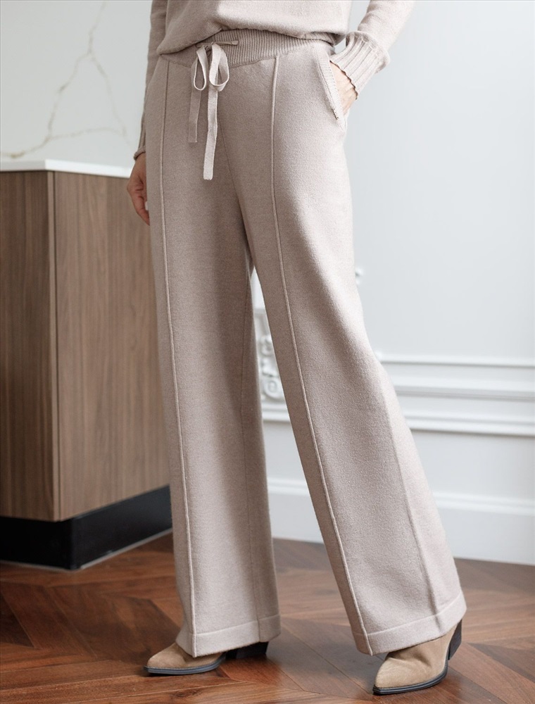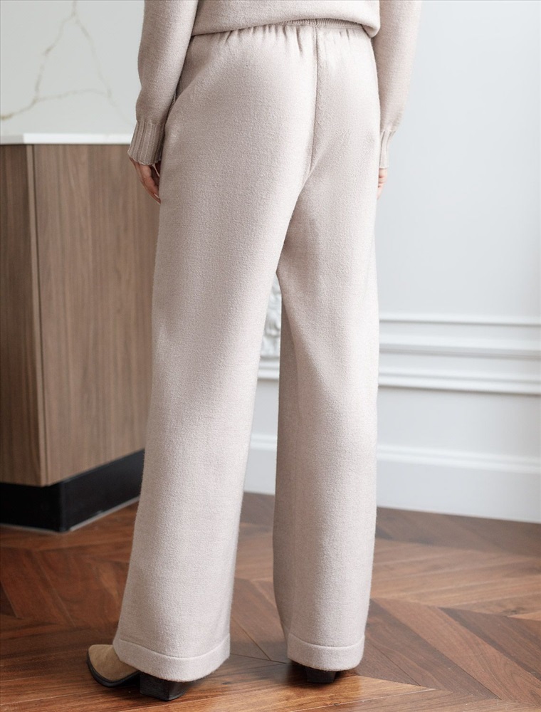 Брюки свободного силуэта выполнены из мягкой пряжи с кашемиром. Вязаный кант вертикально проходящий по всему изделию, визуально стройнит и вытягивает силуэт. Изделие дополнено боковыми карманами и регулирующим шнуром на поясе. Мягкая пряжа очень приятная к телу, поддержит комфорт на протяжении всего дня, при этом не перегревая. Сочетается в костюме с D31.141, D31.147, D31.148, D31.149, D34.202, D34.203, D34.205, D34.206, D37.017, D37.018, D39.358, D39.359, D39.360