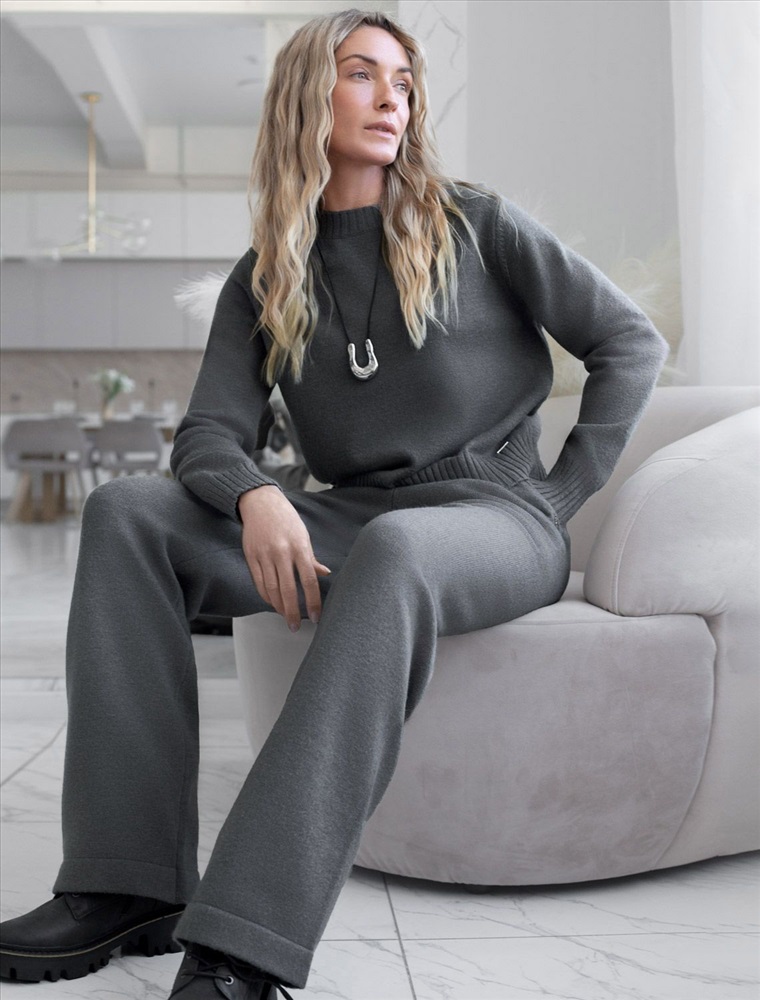 Плотность: 7 GG Параметры модели на первом фото: Рост 170, бюст 89, талия 63, бедра 92 Брюки прямого силуэта выполнены из мягкой пряжи с кашемиром. Нежная пряжа приятно ощущается на теле, сохраняя комфортное тепло. Не колется и не перегревает. Пояс регулируется вязаным шнуром, позволяя носить изделие на талии или чуть ниже. Модель сочетается с любым верхом из коллекции с кашемиром. Комментарии к товару