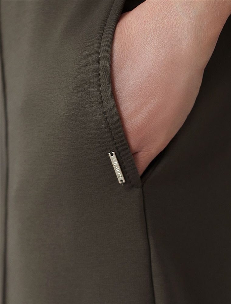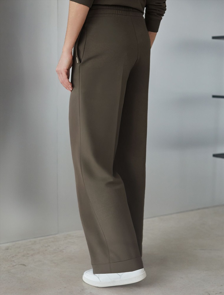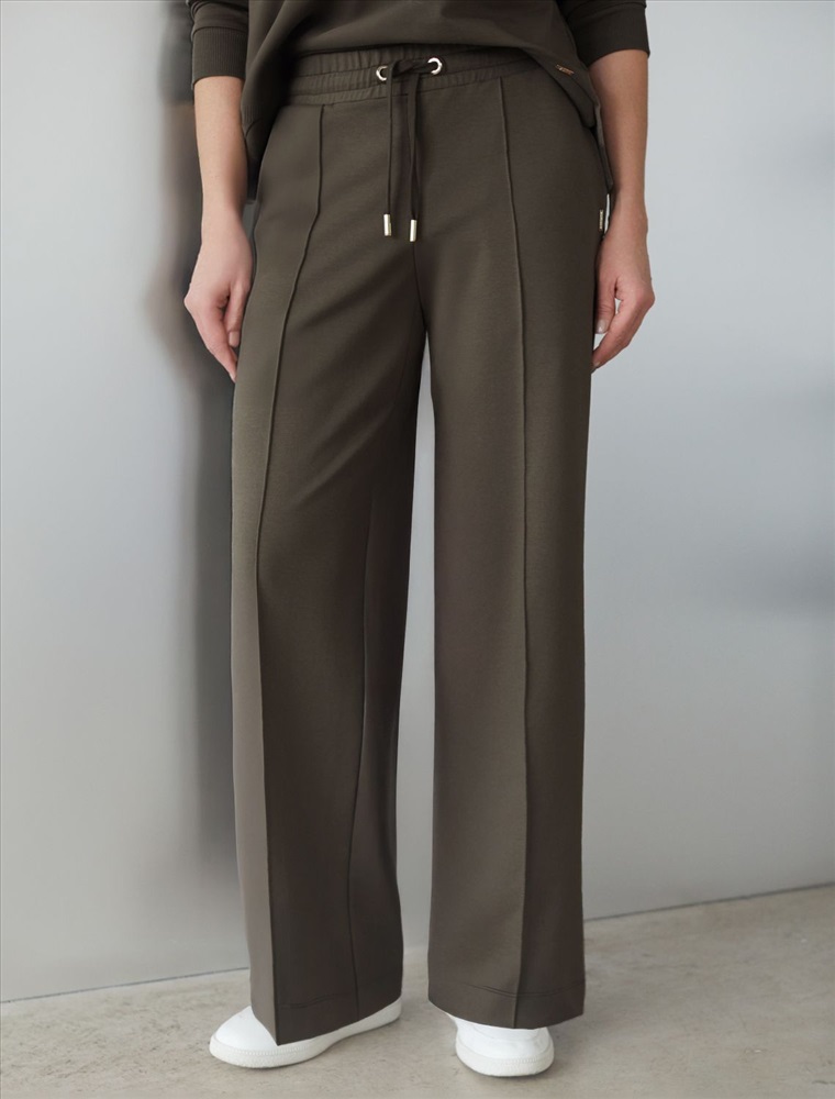 Плотность: 240 Г/м2 Брюки цвета хаки прямого кроя выполнены из премиального футера-двухнитки. Лаконичный силуэт поддерживают застроченные стрелки, зрительно вытягивающие силуэт. Удобный пояс на резинке регулируется хлопковым шнурком с золотистой фурнитурой. Наличие эластана в составе изделия гарантирует комфорт и долговечность изделия. Эластичный материал хорошо пропускает воздух, позволяя телу дышать, и легко тянется, не ограничивая движения. Эти уютные брюки созданного для вашего комфорта. Нежный и стильный вариант подходит на любую фигуру, благодаря своей идеальной посадке. Свободный прямой крой обеспечивает свободу движений и максимальное удобство в любых ситуациях, поэтому они подойдут и на большие размеры, включая 56 размер. Стильный расклешенный крой добавляет изюминку в ваш образ. Эти брюки универсальны и могут стать отличным вариантом, как для занятий, так и для повседневной носки. Они легко вписываются в повседневный образ, благодаря универсальности и элегантности. Достоинства фигуры подчеркиваются, а силуэт визуально вытягивается за счет кроя палаццо и стрелок. В этих спортивных брюках вы будете чувствовать себя комфортно и уверенно, наслаждаясь каждым моментом дня. Рекомендуем сочетать с артикулами: D49.160, D49.167, D49.168