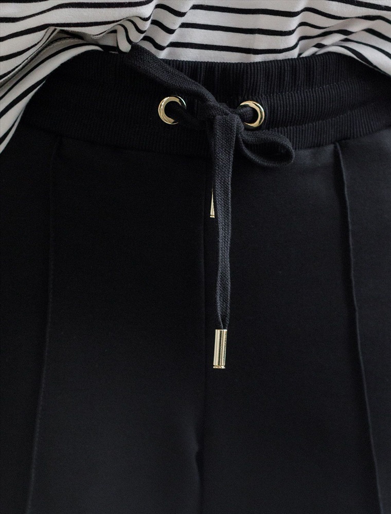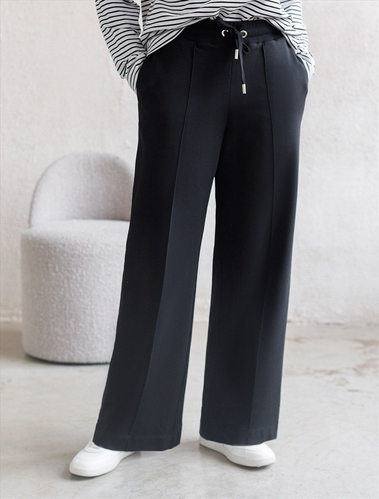 Плотность: 240 Г/м2 Брюки черного цвета прямого кроя выполнены из премиального футера-двухнитки. Лаконичный силуэт поддерживают застроченные стрелки, зрительно вытягивающие силуэт. Удобный пояс на резинке регулируется хлопковым шнурком с золотистой фурнитурой. Наличие эластана в составе изделия гарантирует комфорт и долговечность изделия. Эластичный материал хорошо пропускает воздух, позволяя телу дышать, и легко тянется, не ограничивая движения. Эти уютные брюки созданного для вашего комфорта. Нежный и стильный вариант подходит на любую фигуру, благодаря своей идеальной посадке. Свободный прямой крой обеспечивает свободу движений и максимальное удобство в любых ситуациях, поэтому они подойдут и на большие размеры, включая 56 размер. Вы можете выбрать брюки подходящие под Ваш рост, представлены на высокий рост и низкий. Стильный расклешенный крой добавляет изюминку в ваш образ. Эти брюки универсальны и могут стать отличным вариантом, как для занятий, так и для повседневной носки. Они легко вписываются в повседневный образ, благодаря универсальности и элегантности. Достоинства фигуры подчеркиваются, а силуэт визуально вытягивается за счет кроя палаццо и стрелок. В этих спортивных брюках вы будете чувствовать себя комфортно и уверенно, наслаждаясь каждым моментом дня. Рекомендуем сочетать с артикулами: D49.160, D49.167, D49.168 Комментарии к товару