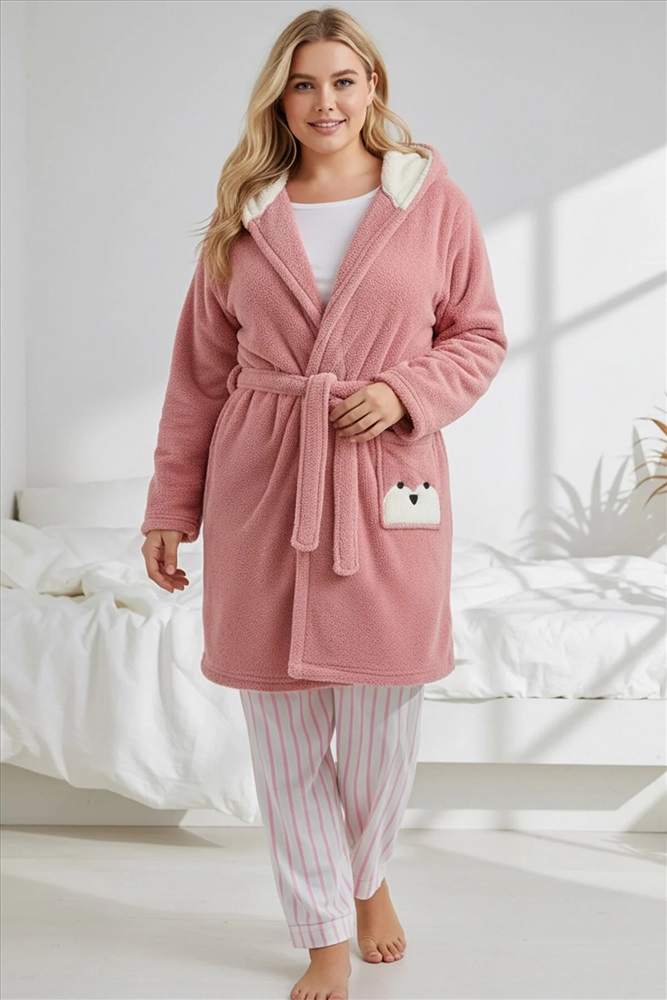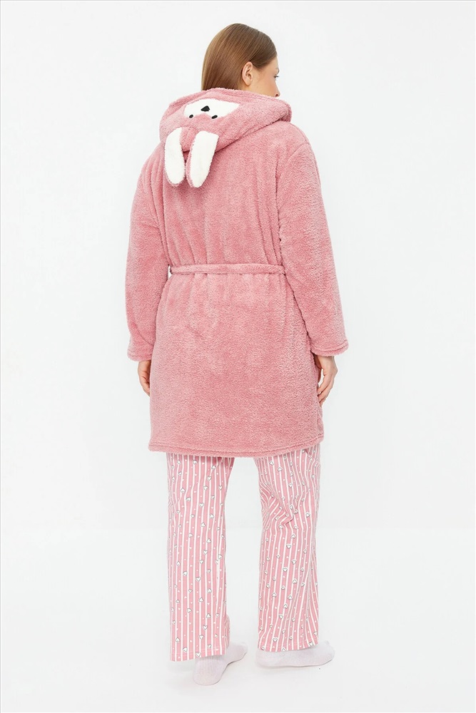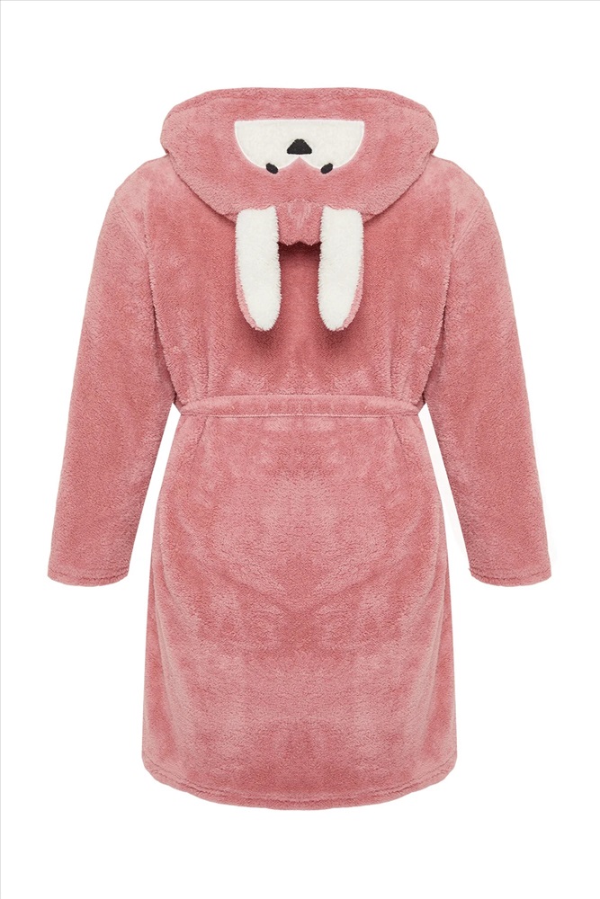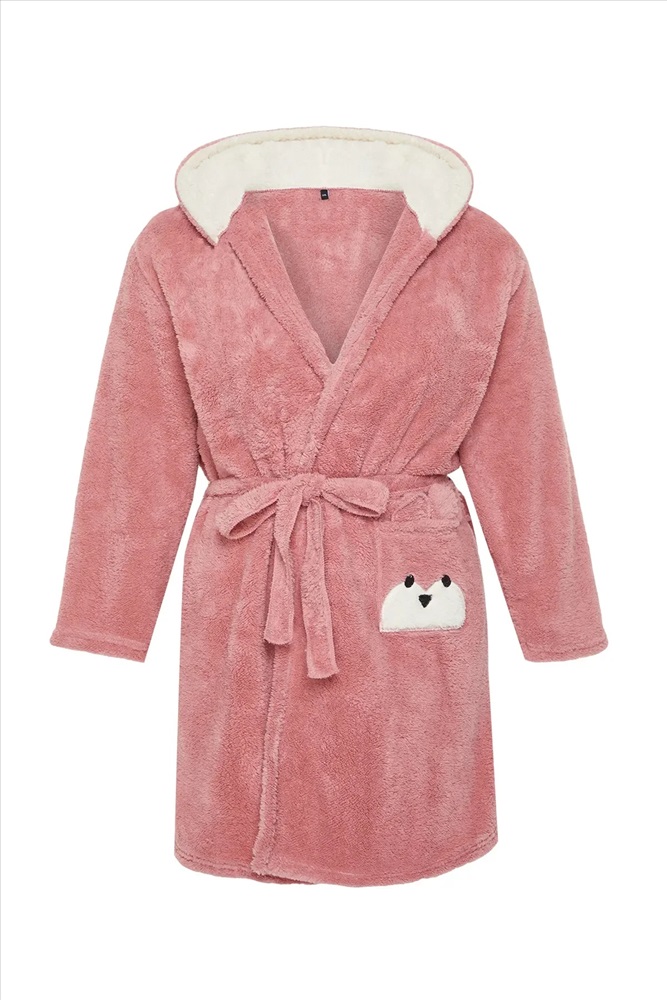 Pudra Wellsoft/Peluş Hayvan Figürlü Cepli Kapüşonlu Örme Sabahlık TBBAW24SB00013