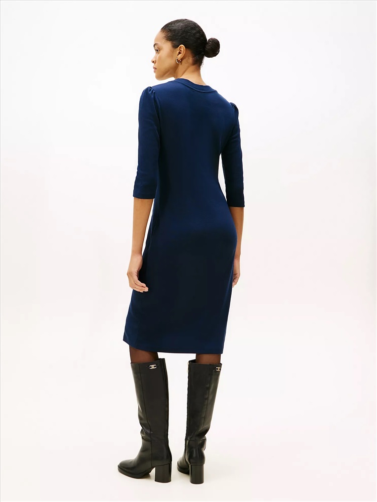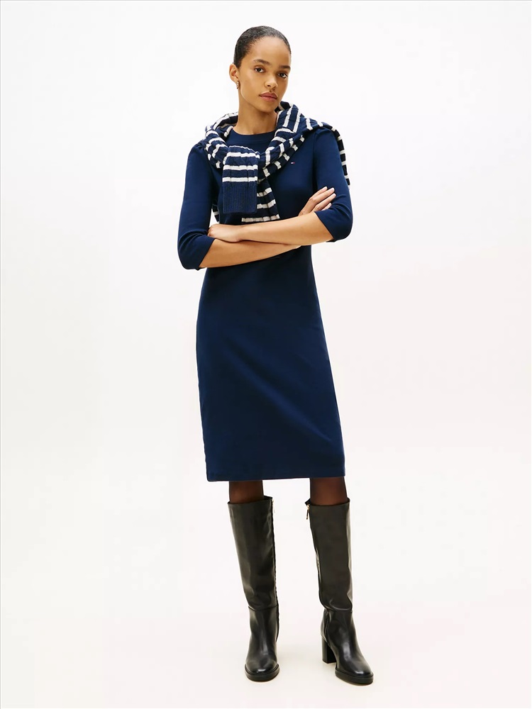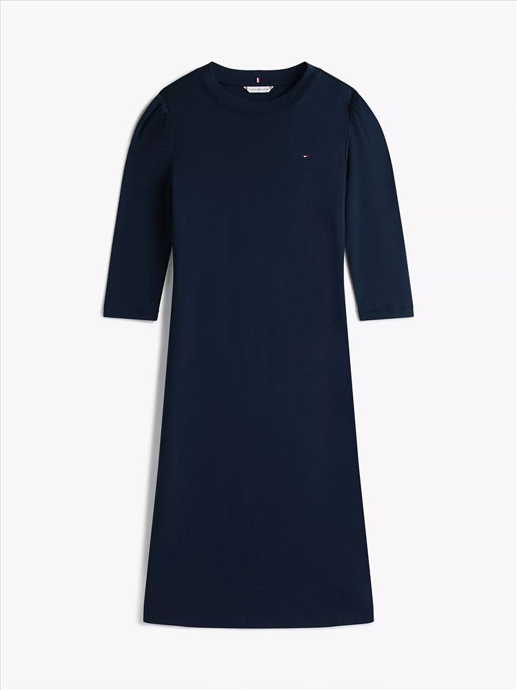 Tommy Hilfiger women's dress. Our versatile rib-knit dress offers elevated details, like gathered puff sleeves and an effortlessly flattering A-line shape. Made from lightweight cotton knit, it's super comfortable.