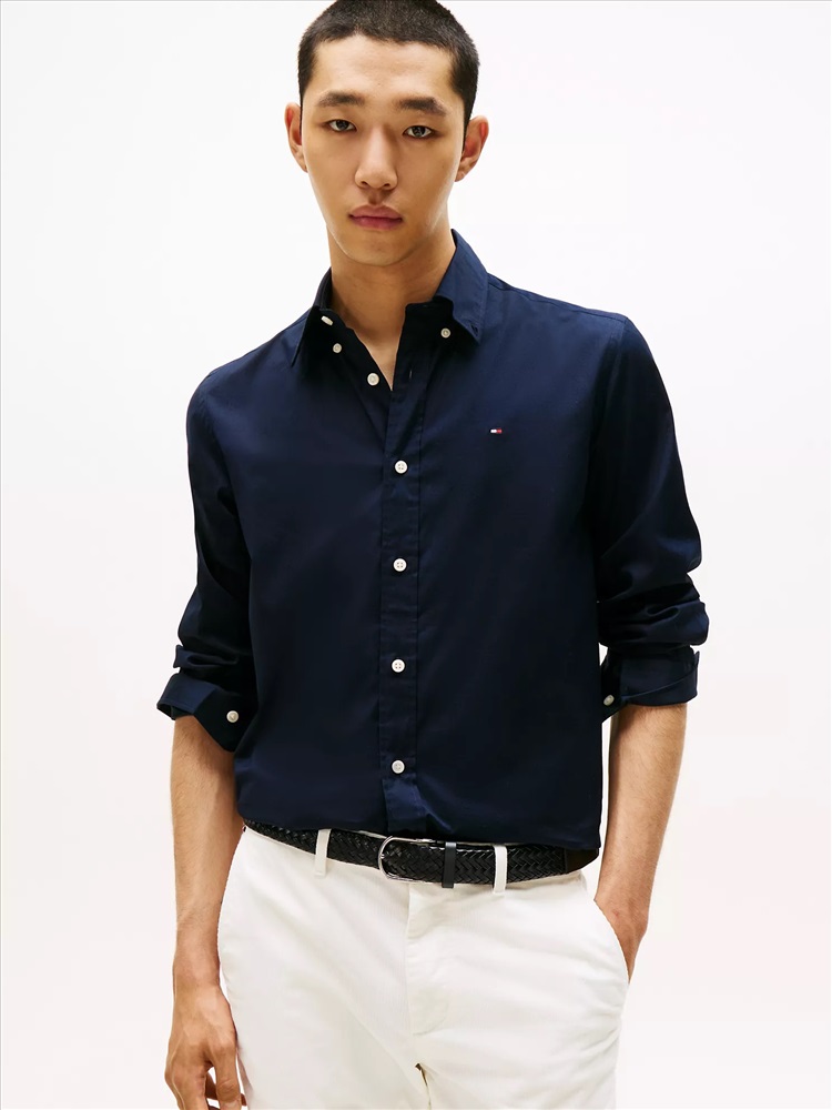 Tommy Hilfiger men's shirt. Our stretch-cotton All-Day Shirt has the crisp texture you expect, softened with an enzyme wash for a subtly smoother feel and looser drape. This version is cut in a polished, easy fit for the office and beyond.