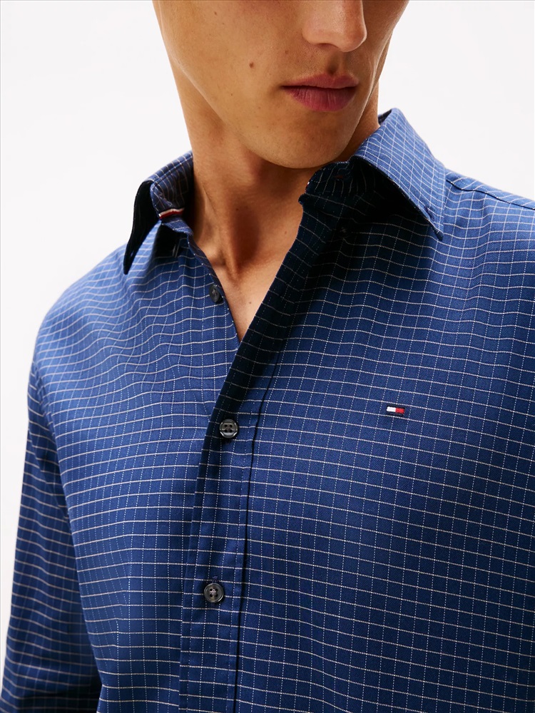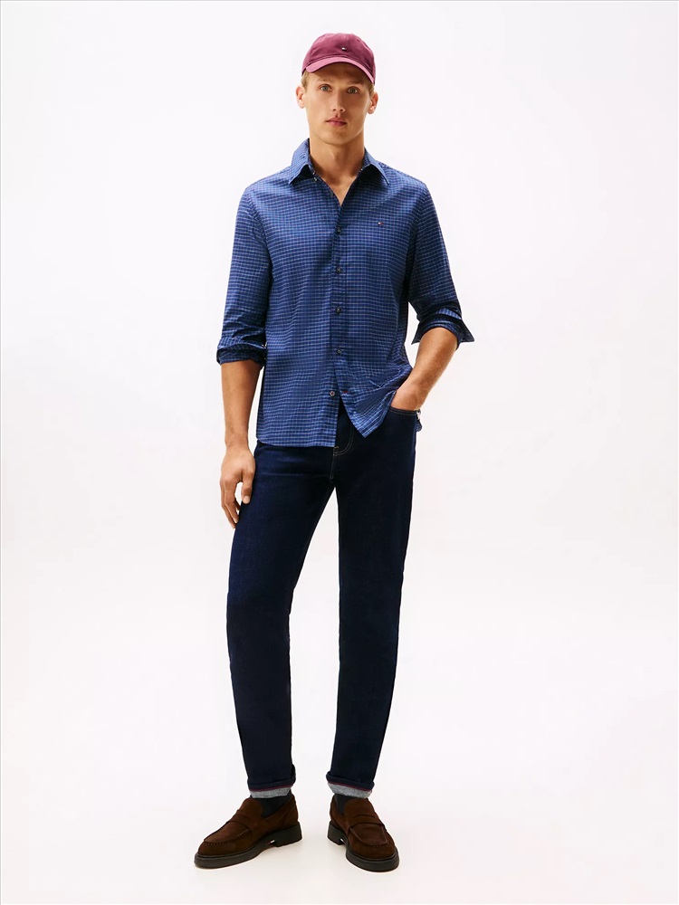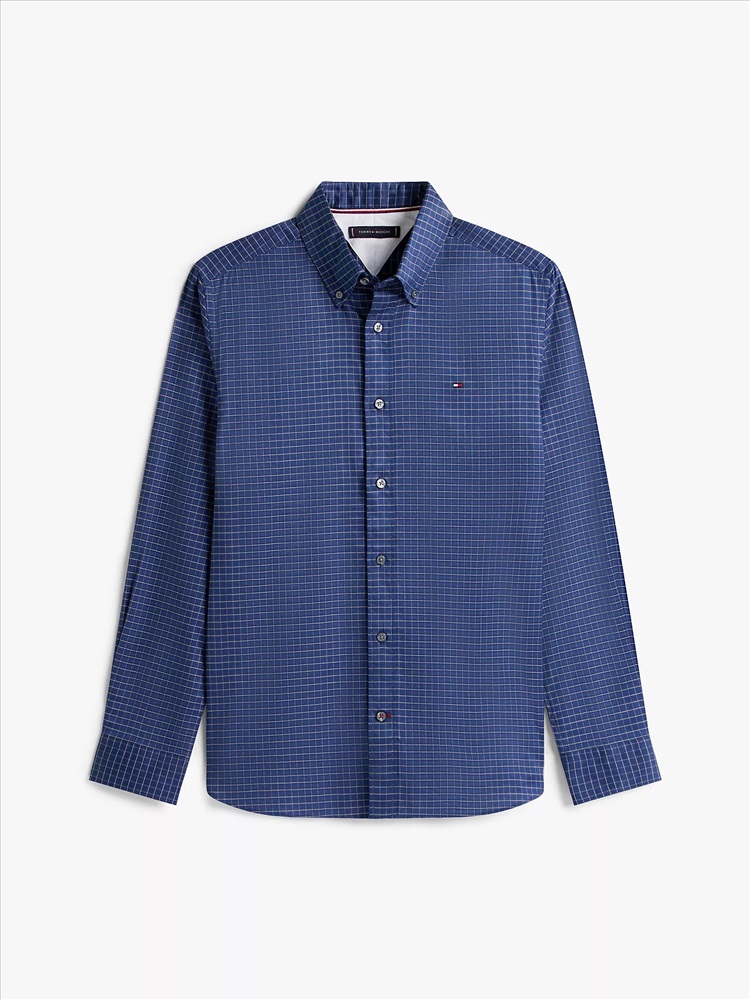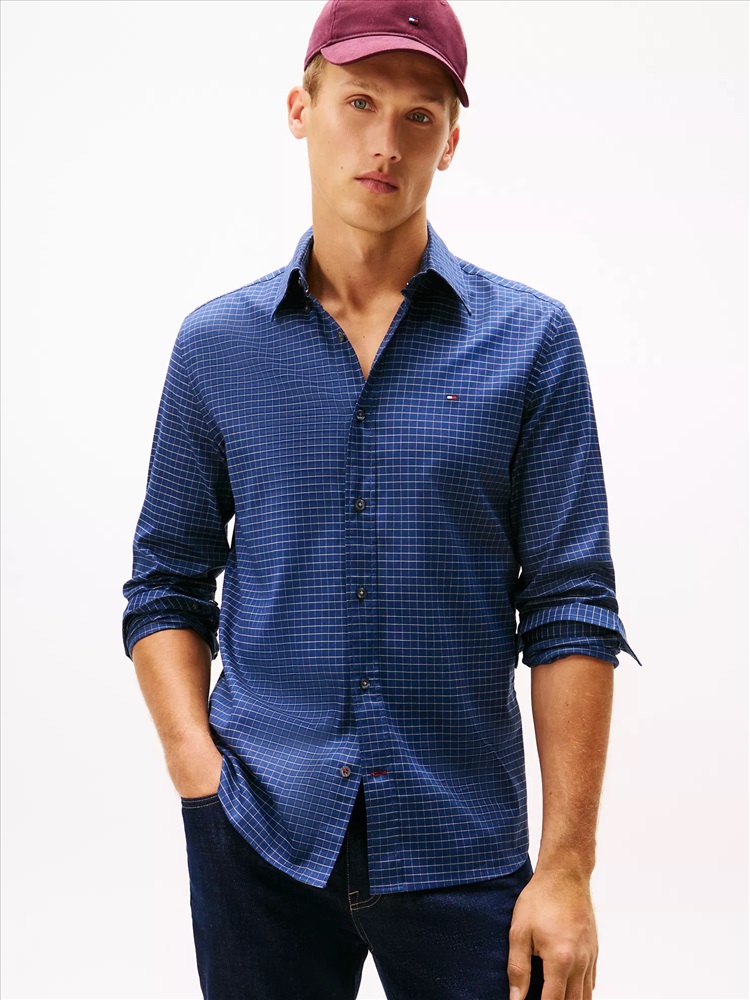 Tommy Hilfiger men's shirt. Capture that easy-going fall aesthetic in our durable herringbone shirt. Made from stretch cotton for comfort, this top is distinguished by a seasonal check print.