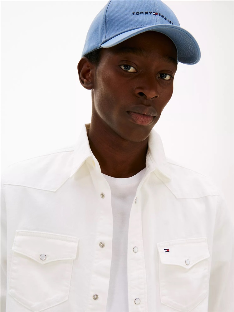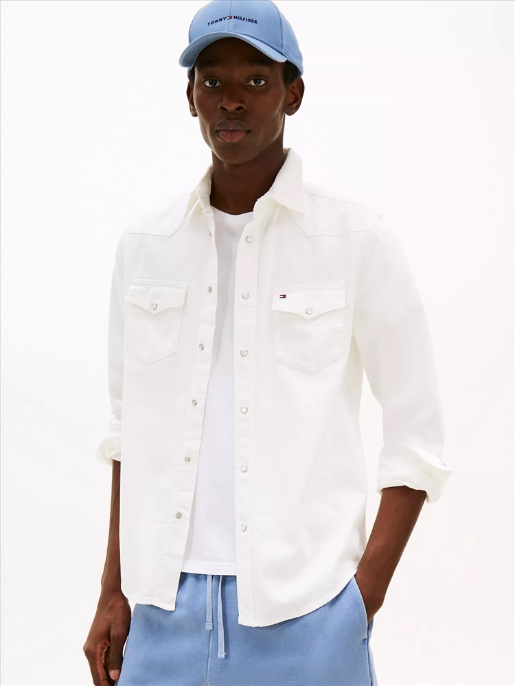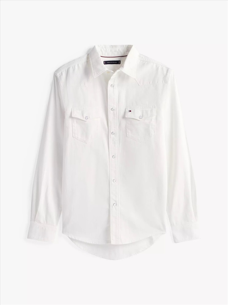 Tommy Hilfiger men's shirt. Tap into classic Americana style in this denim shirt, featuring a Western-inspired yoke, a point collar and two flap pockets at the chest.