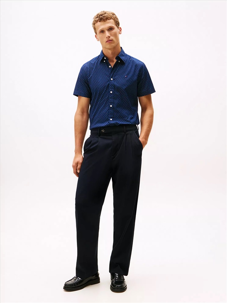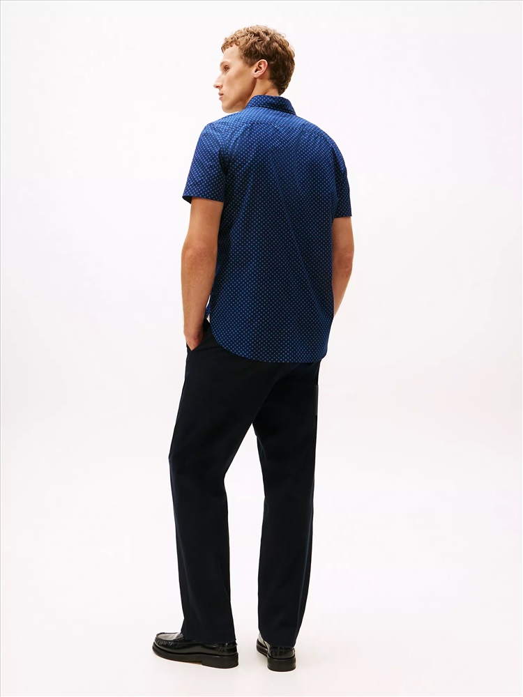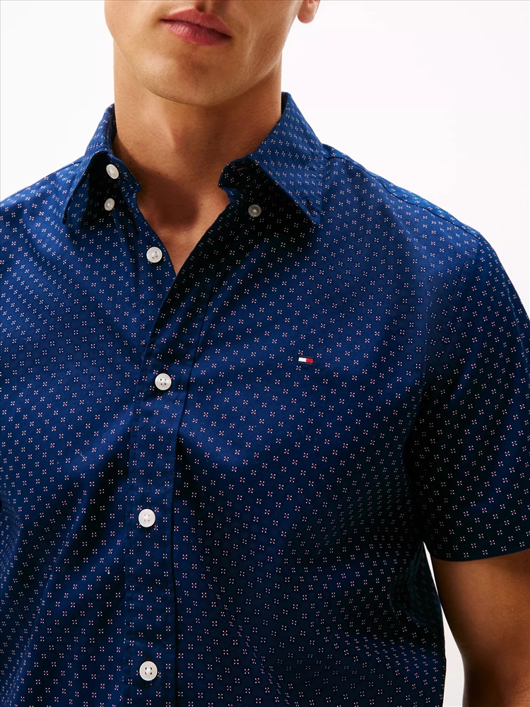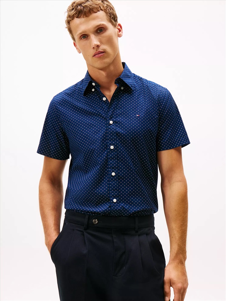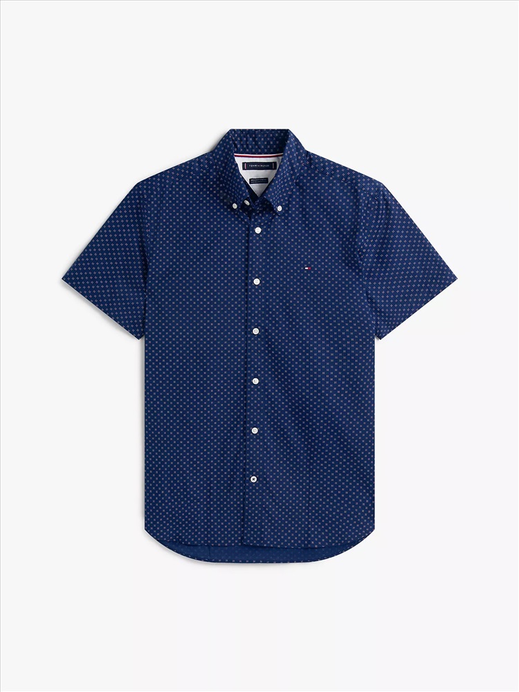 Tommy Hilfiger men's shirt. Our stretch-cotton All-Day Shirt has the crisp texture you expect, softened with an enzyme wash for a subtly smoother feel and looser drape. This button-up top is finished in a versatile geometric print making it a go-to for the office and beyond.