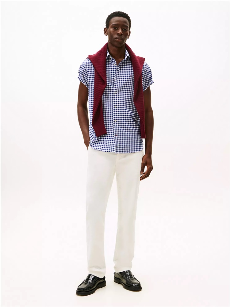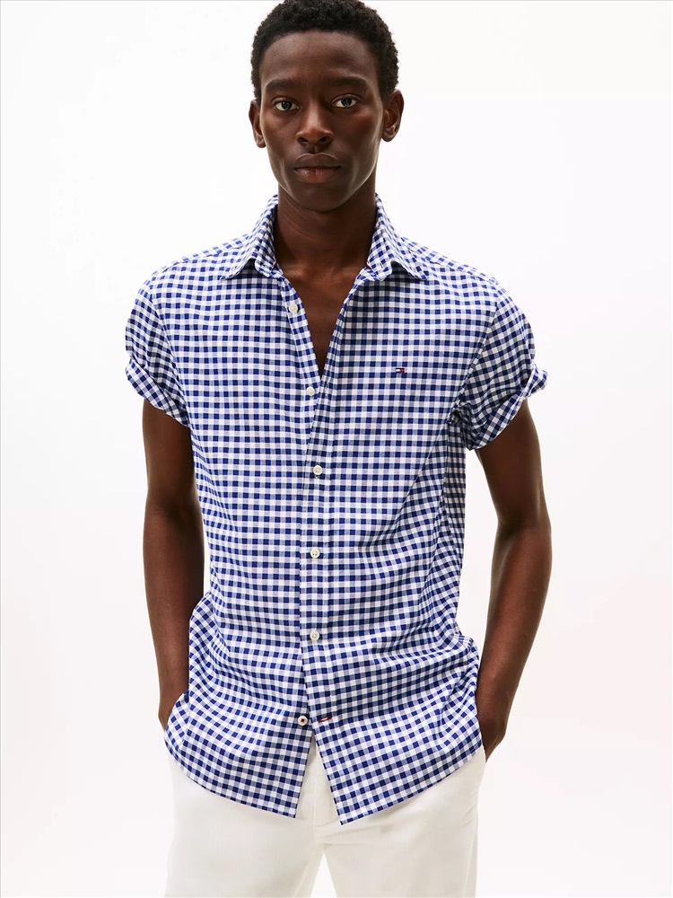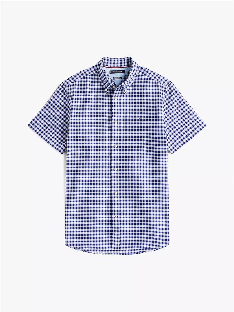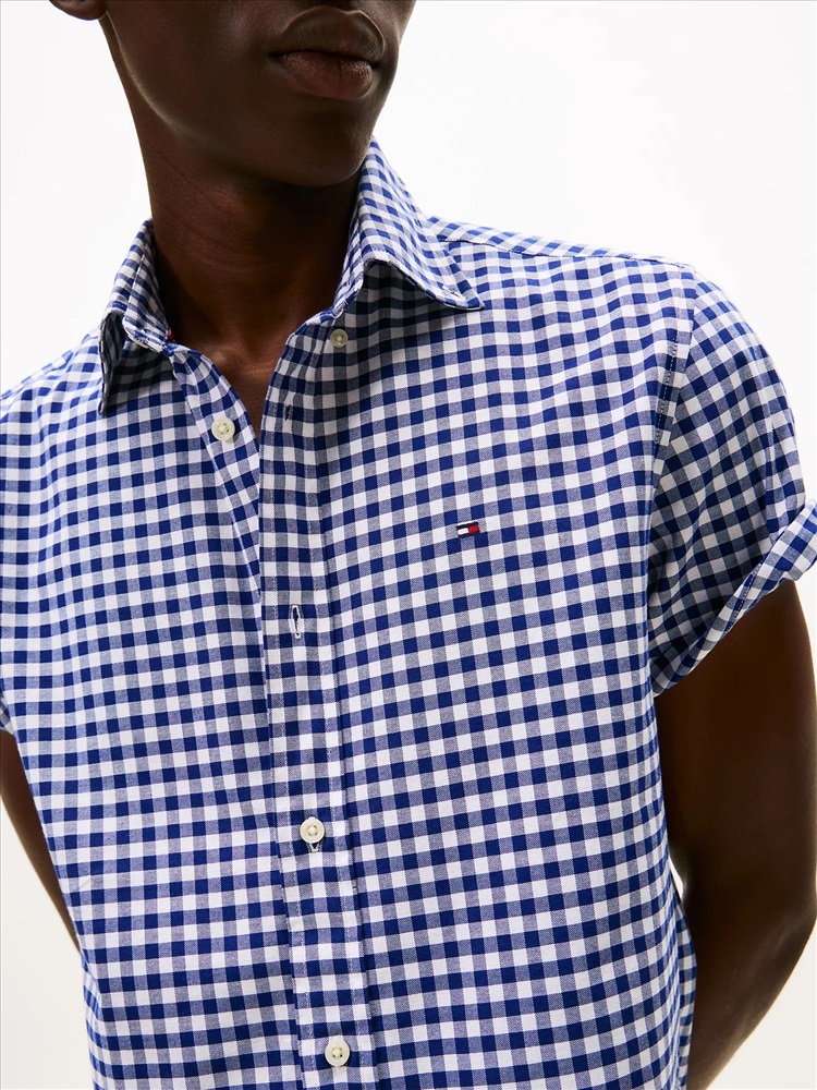 Tommy Hilfiger men's shirt. Embrace classic easy-going style with this Oxford shirt cut in a regular fit, and distinguished by an all-over gingham check and subtle Tommy Hilfiger branding.