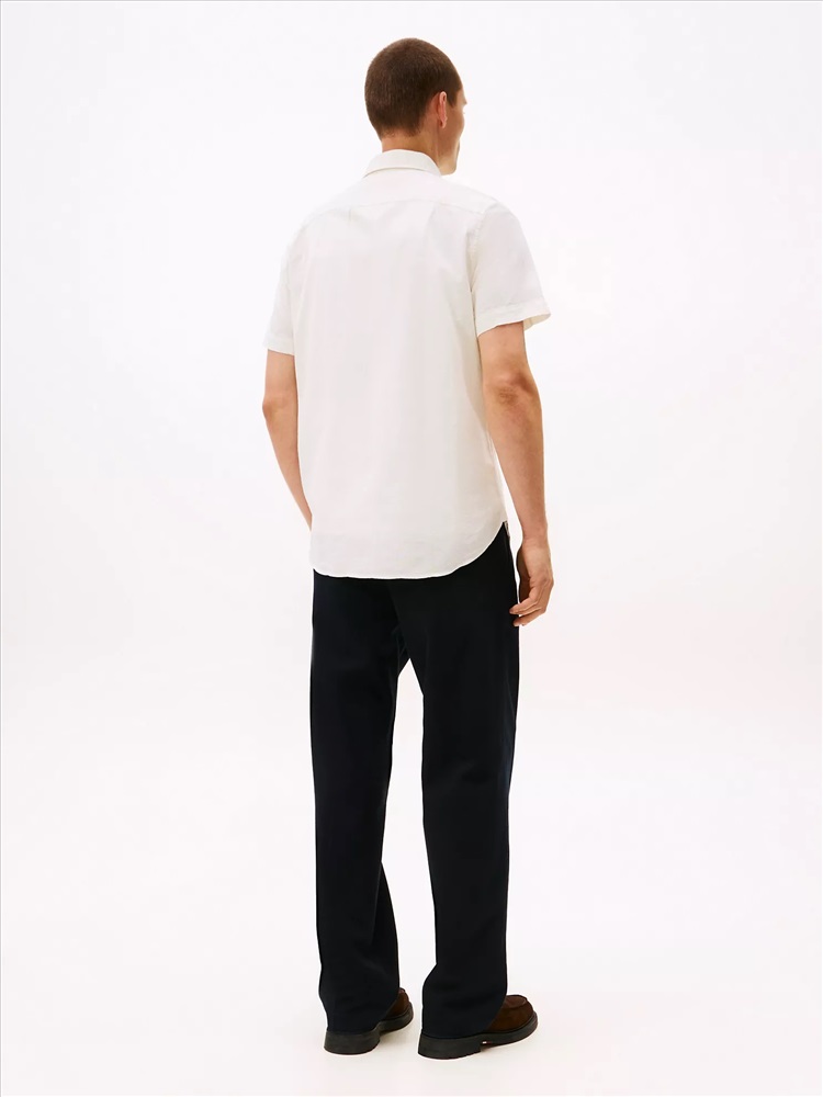 Tommy Hilfiger men's shirt. Made from lightweight blend of cotton, viscose and linen, this short-sleeve shirt keeps you cool and comfortable.