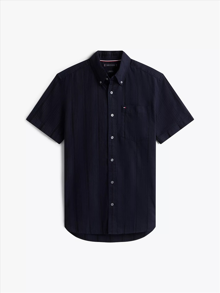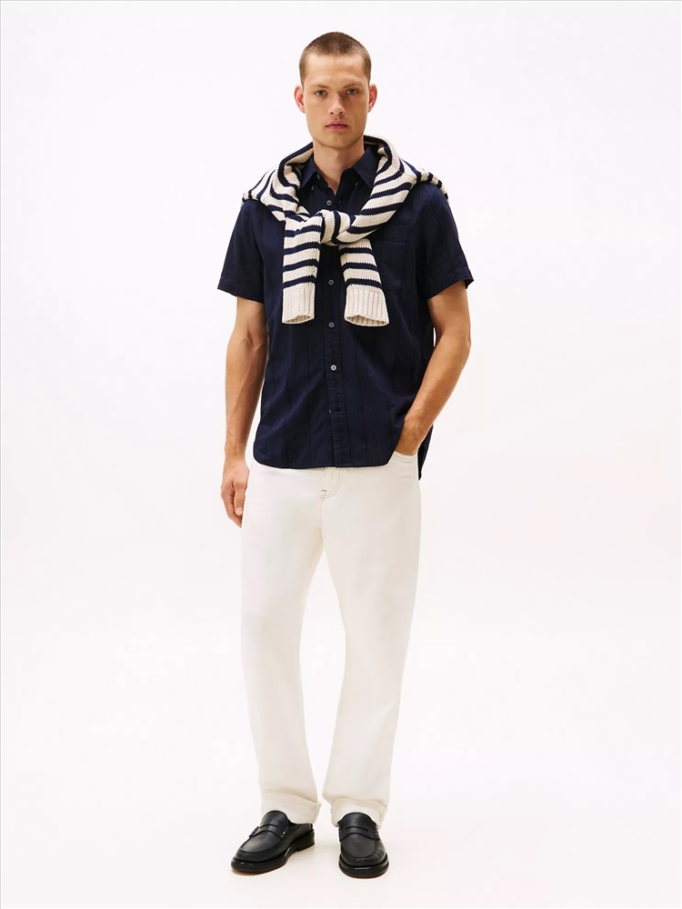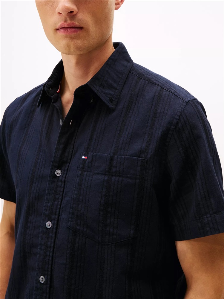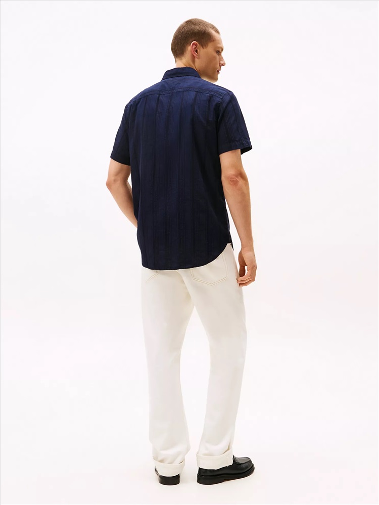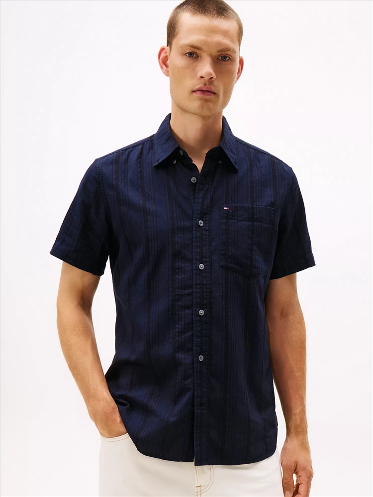 Tommy Hilfiger men's shirt. Made from lightweight blend of cotton, viscose and linen, this short-sleeve shirt keeps you cool and comfortable.
