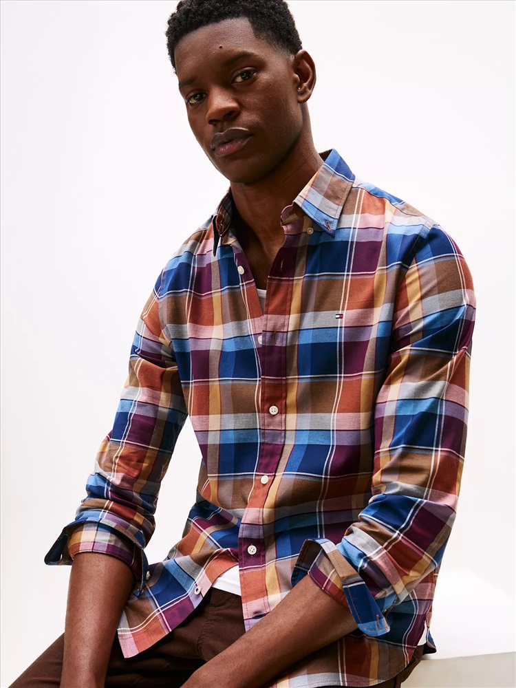 Tommy Hilfiger men's shirt. For work or weekends, our All-Day Shirt is cut in an easy fit and is made from soft stretch cotton. This version is finished in a versatile plaid print, making it a go-to for the office and beyond.