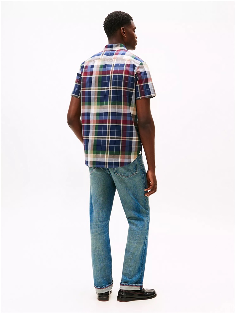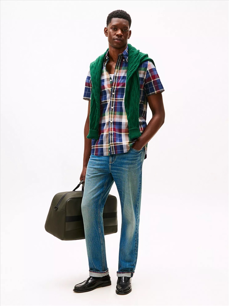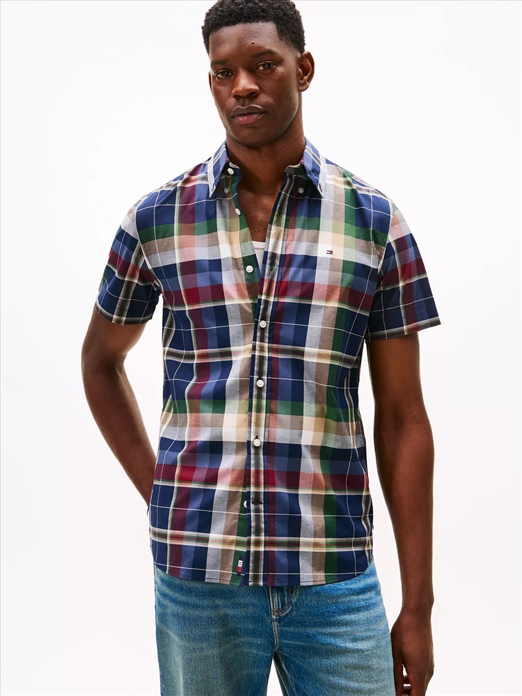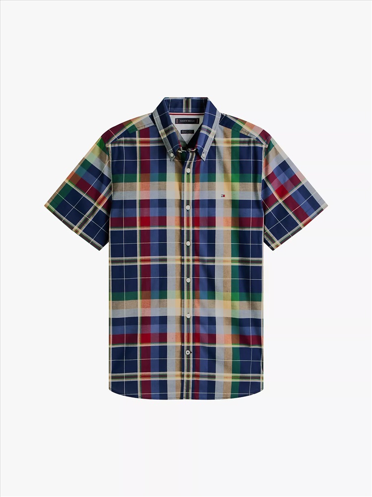 Tommy Hilfiger men's shirt. Our All-Day Shirt is crisp, soft, and is easy to iron (making life a lot easier). Designed in a plaid print, this button-up is cut in an easy fit and is made from a stretch-cotton blend for comfort.