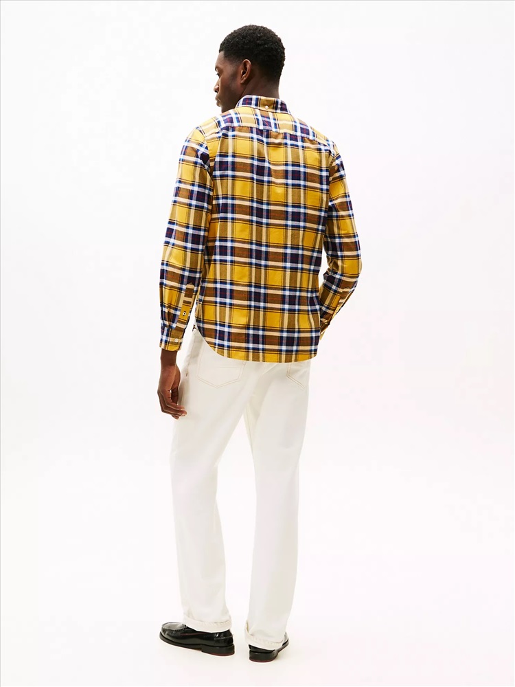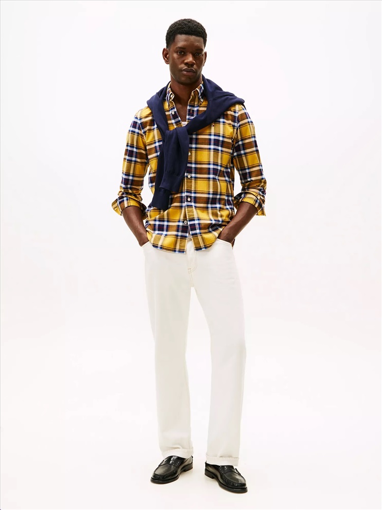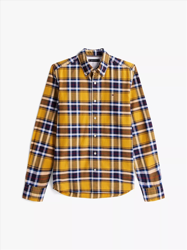 Tommy Hilfiger men's shirt. Shirting made with Oxford cloth is breathable and durable. Our version is made from organic cotton with a hint of stretch and finished in a seasonal plaid print.