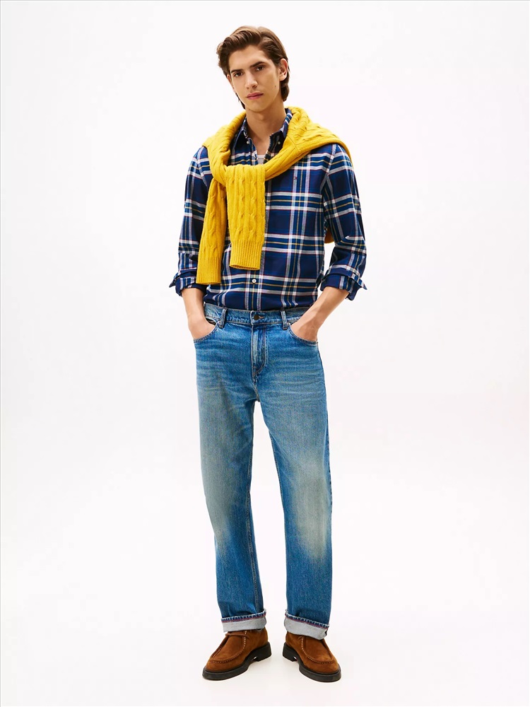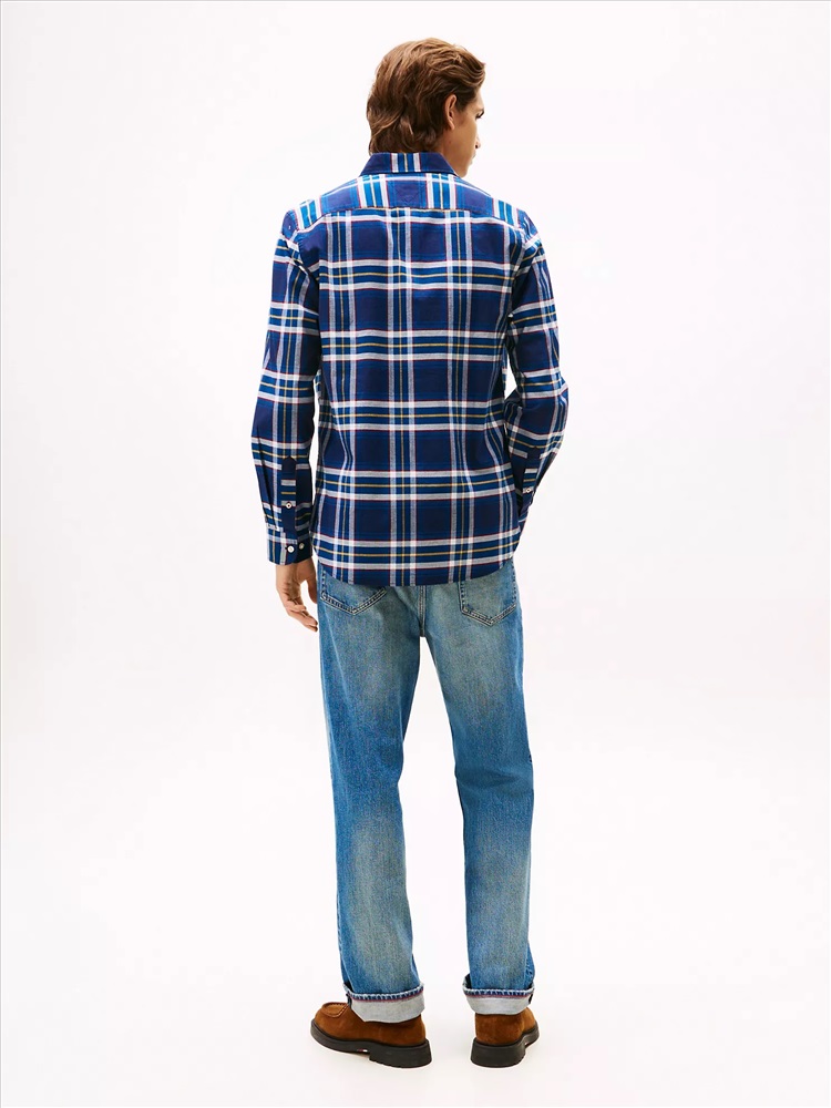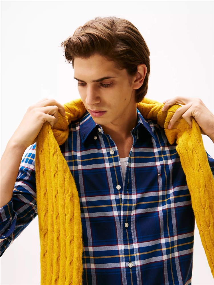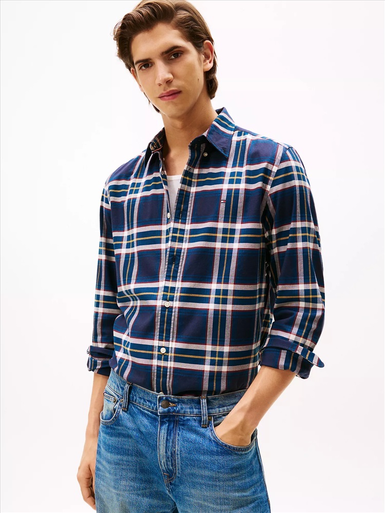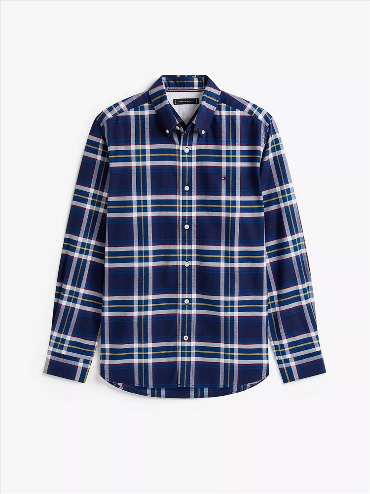 Tommy Hilfiger men's shirt. Shirting made with Oxford cloth is breathable and durable. Our version is made from organic cotton with a hint of stretch and finished in a seasonal plaid print.