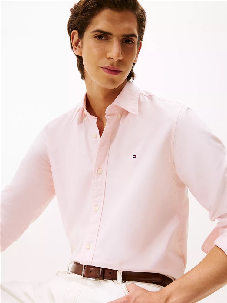 Tommy Hilfiger men's shirt. Embrace classic, easy-going style with this Oxford shirt, distinguished by its easy fit and comfortable stretch-cotton construction.