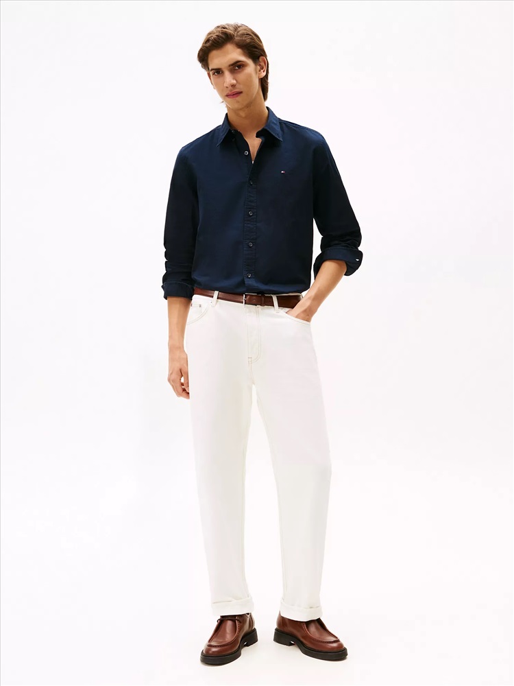 Tommy Hilfiger men's shirt. Embrace classic, easy-going style with this Oxford shirt, distinguished by its easy fit and comfortable stretch-cotton construction.