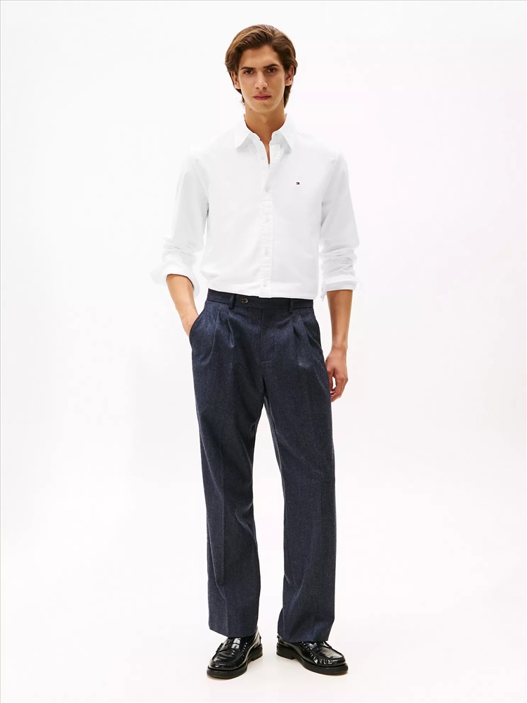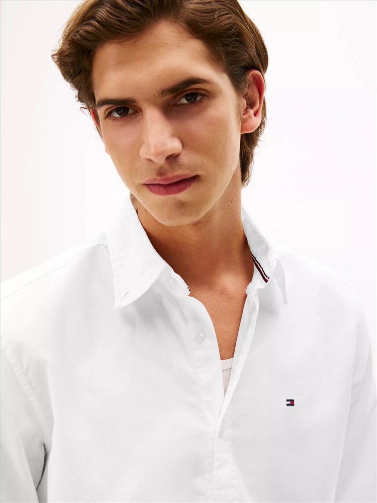 Tommy Hilfiger men's shirt. Embrace classic, easy-going style with this Oxford shirt, distinguished by its easy fit and comfortable stretch-cotton construction.