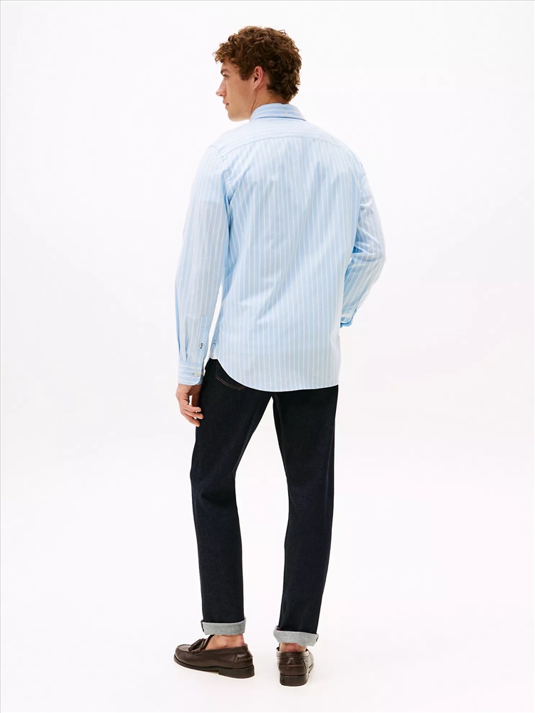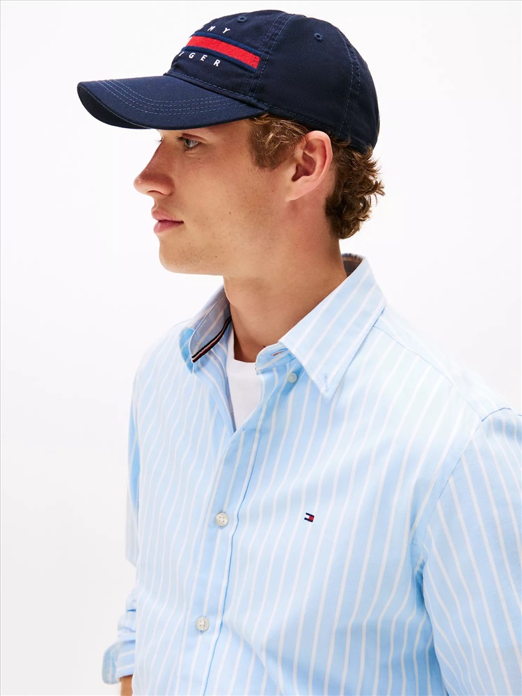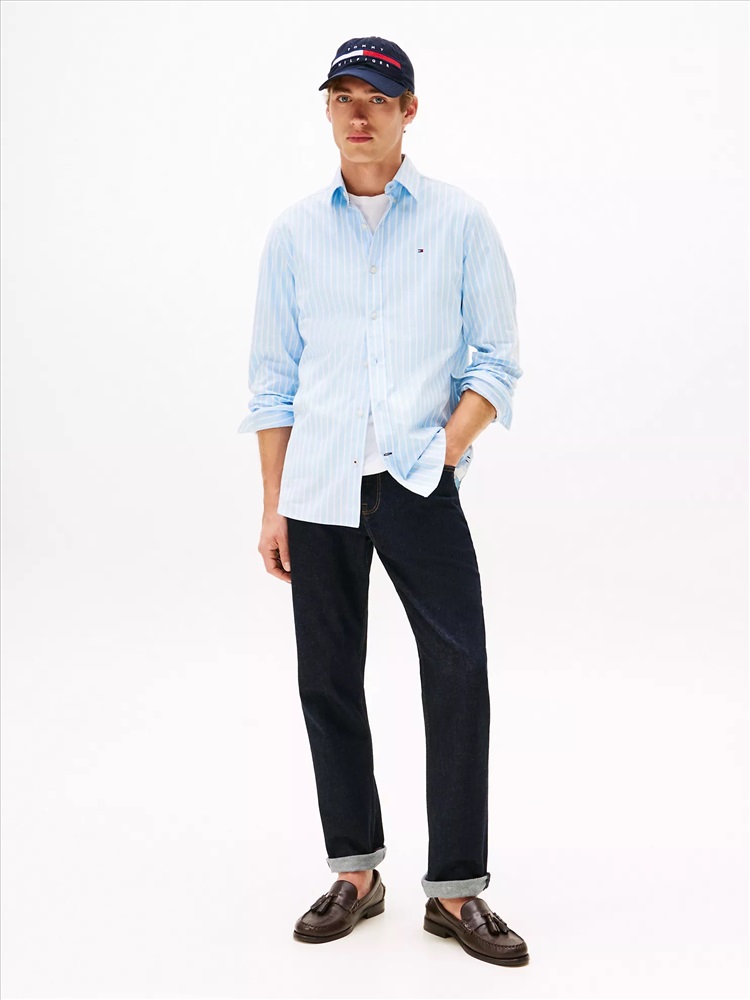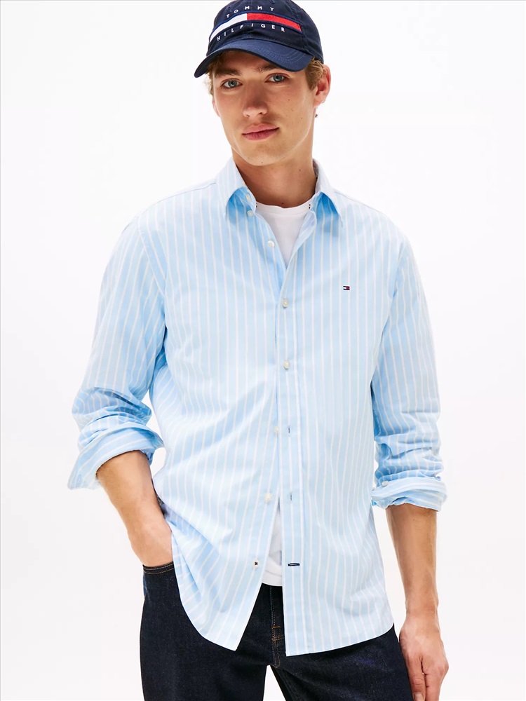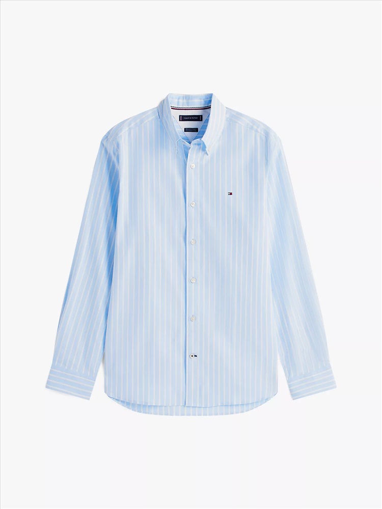 Tommy Hilfiger men's shirt. Our All-Day Shirt is crisp, soft, and is easy to iron (making life a lot easier). Designed in a fresh stripe print, this button-up is cut in a flattering fit and made from a stretch-cotton blend for comfort.