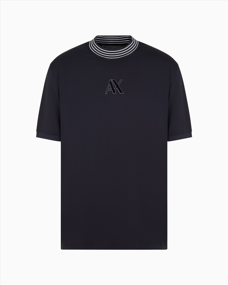 REGULAR FIT T-SHIRT WITH STRIPED CREW NECK IN ASV MERCERISED COTTON