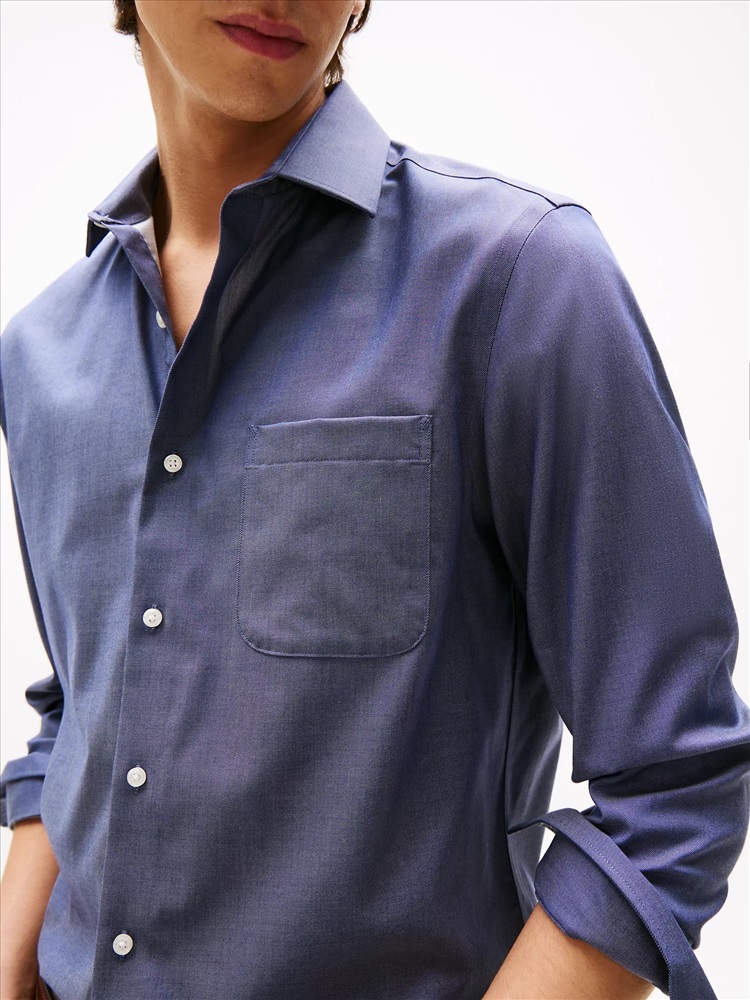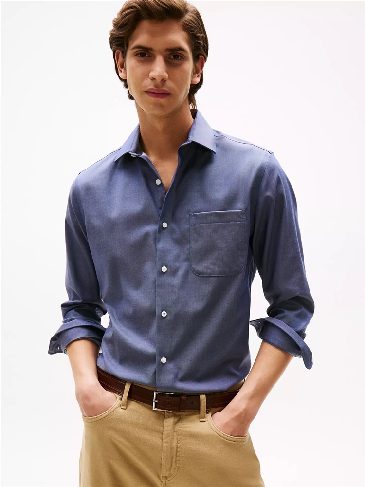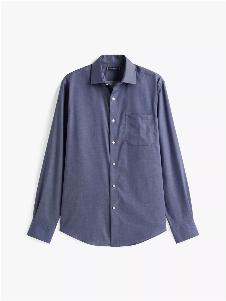 Tommy Hilfiger men's dress shirt. Ideal for the office, our regular-fit shirt is made from cotton twill blended with THFlex stretch fibers for extra stretch and structure.