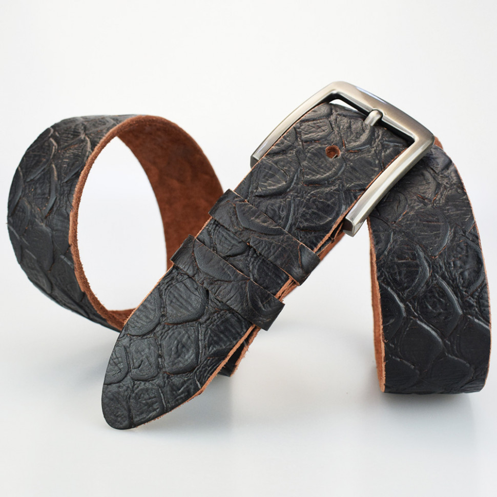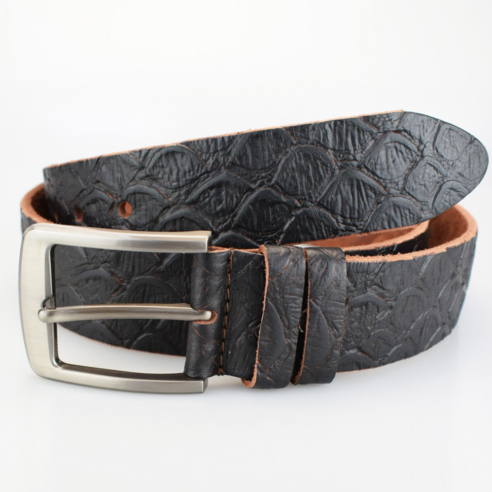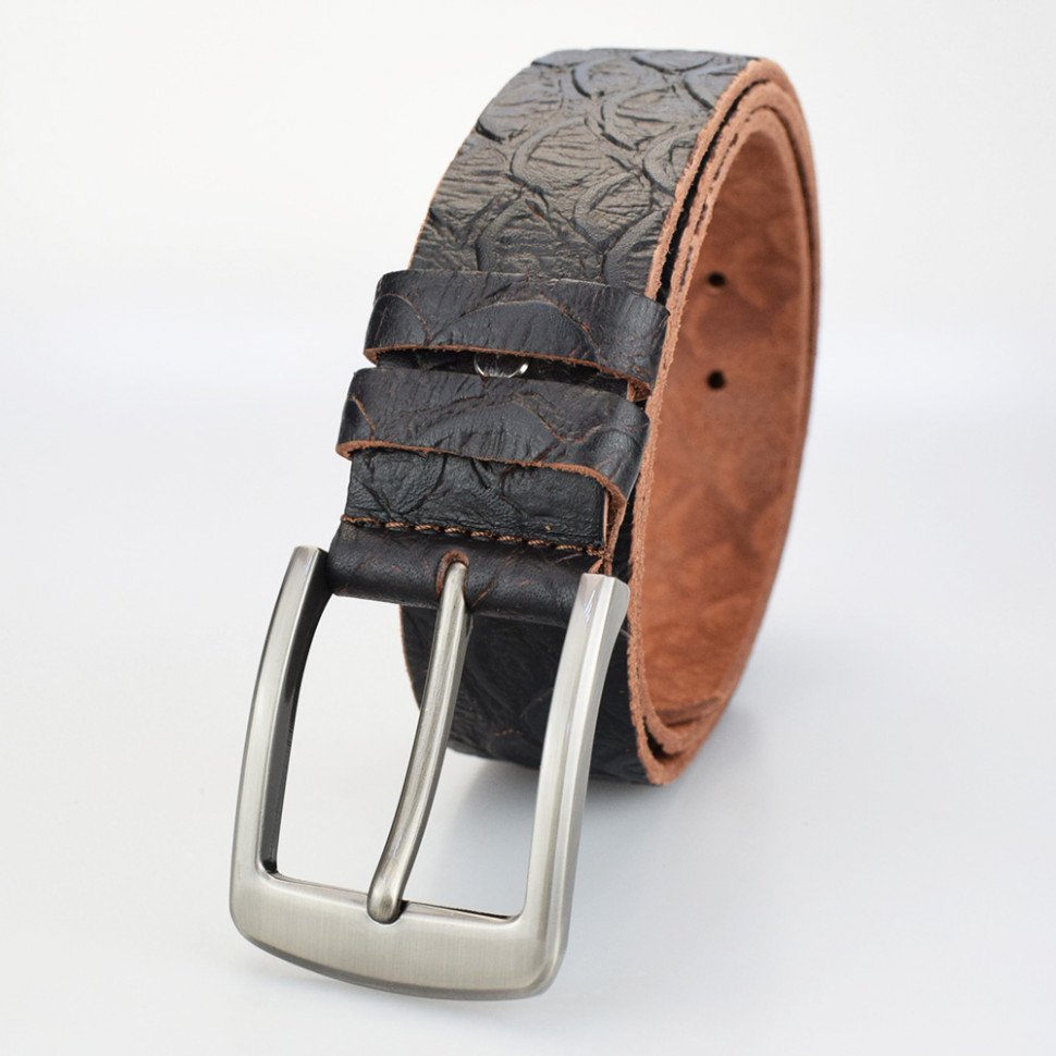 Узор на ремне выполнен горячем тиснением .
