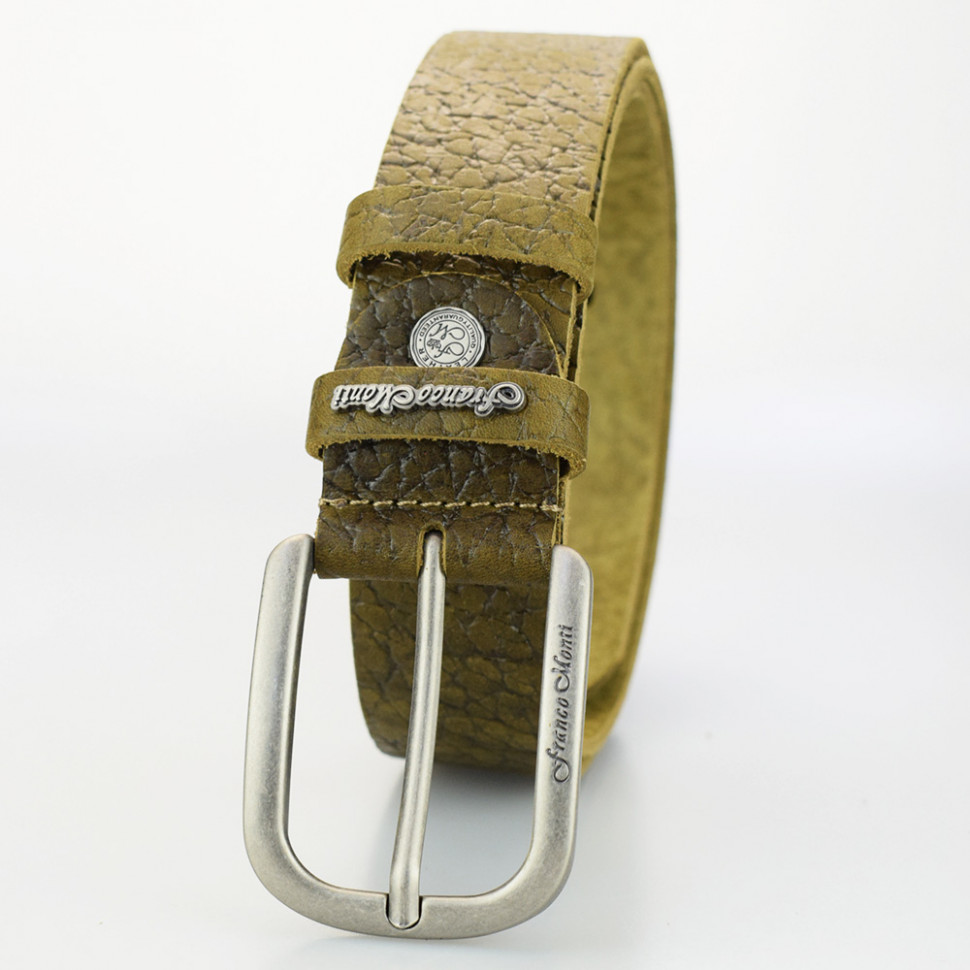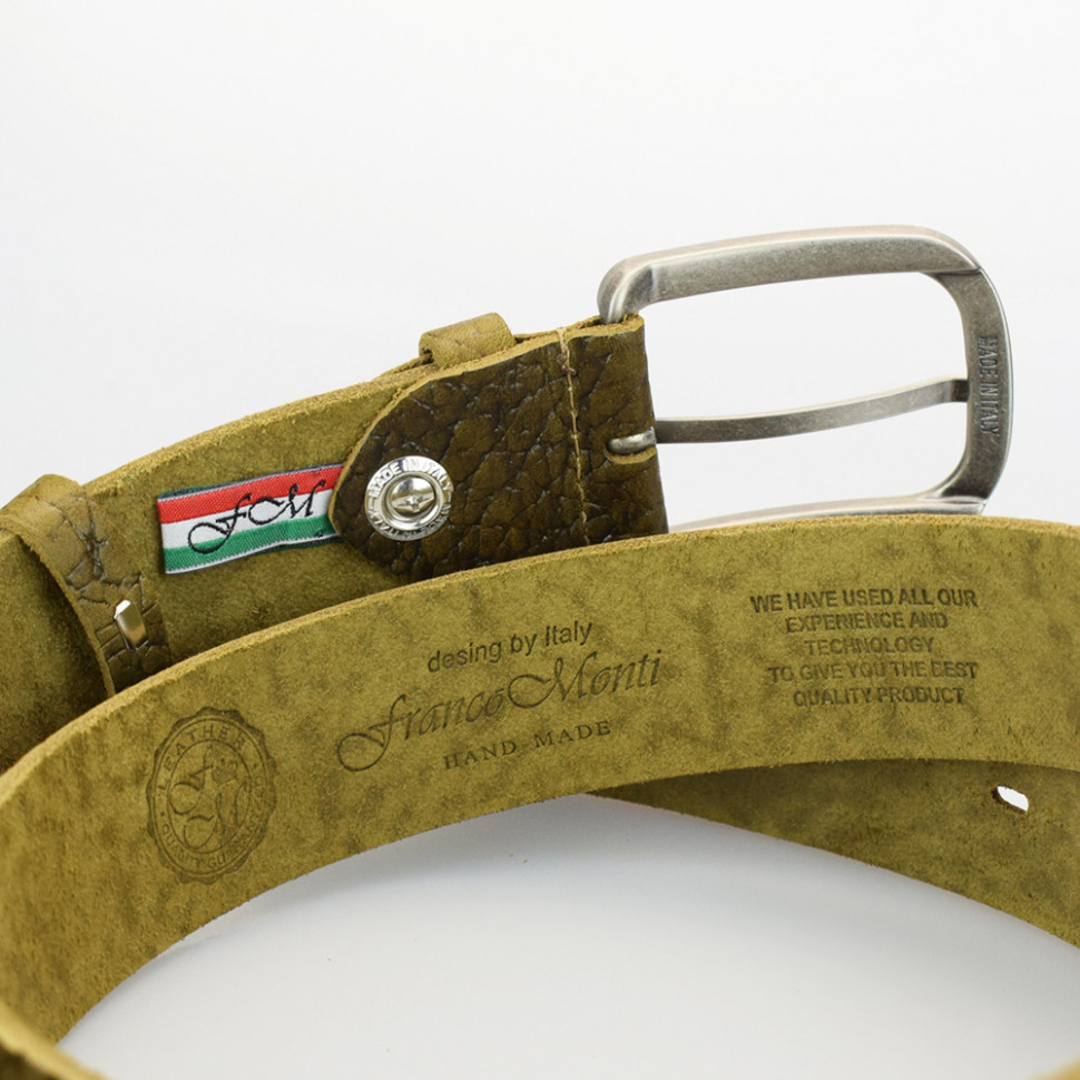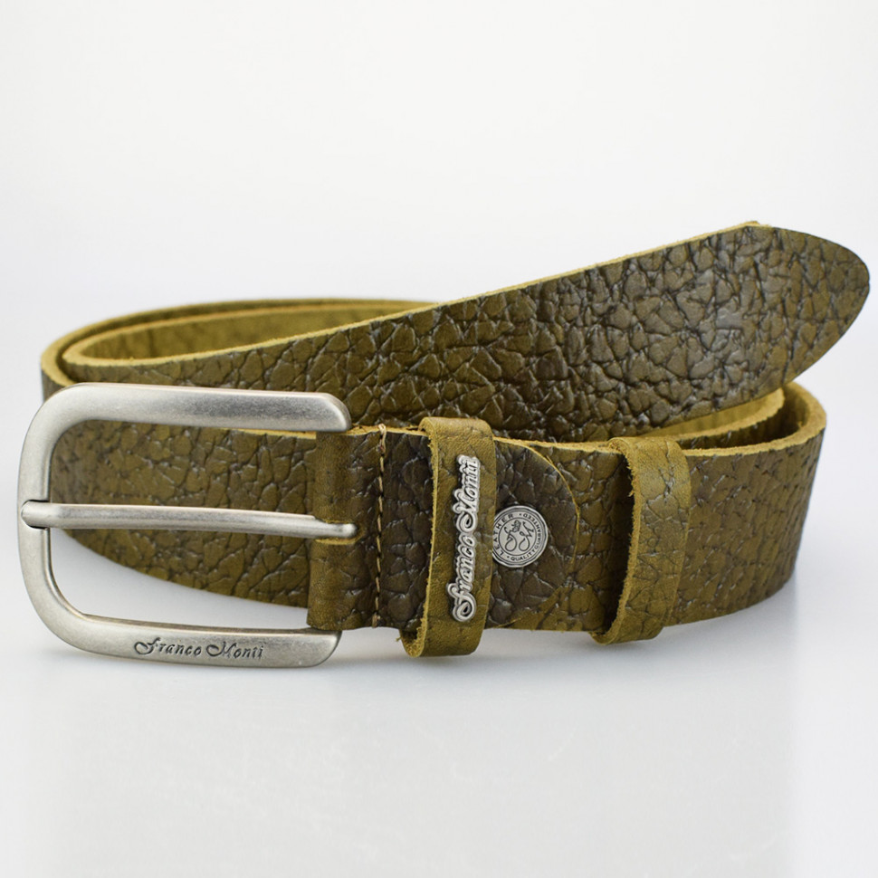 Ширина: 40мм Длина: 105-125 см Производитель: Franсo Monti Цвет: Оливковый Ремень джинсовый шириной 40 мм, с элементами ручной работы. Комментарии к товару
