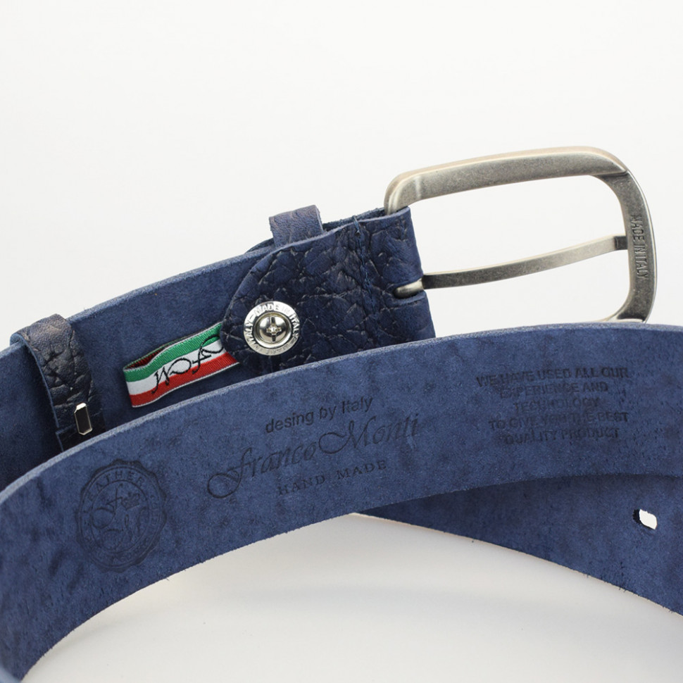 Ширина: 40мм Длина: 105-125 см Производитель: Franсo Monti Цвет: Синий Ремень джинсовый шириной 40 мм, с элементами ручной работы. Комментарии к товару