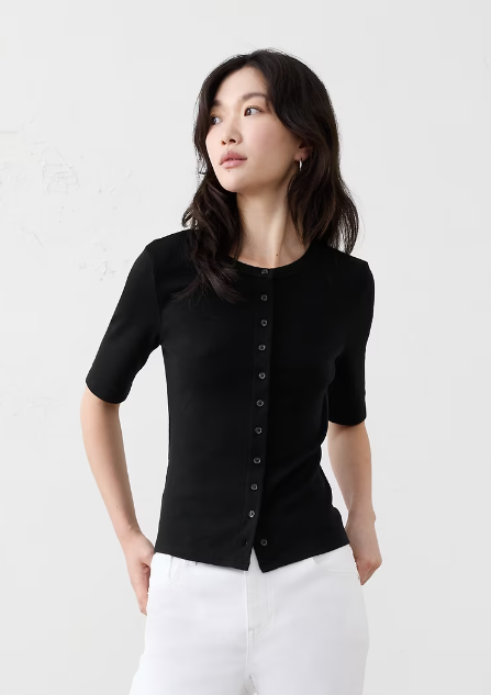Ribbed Button-Down Top