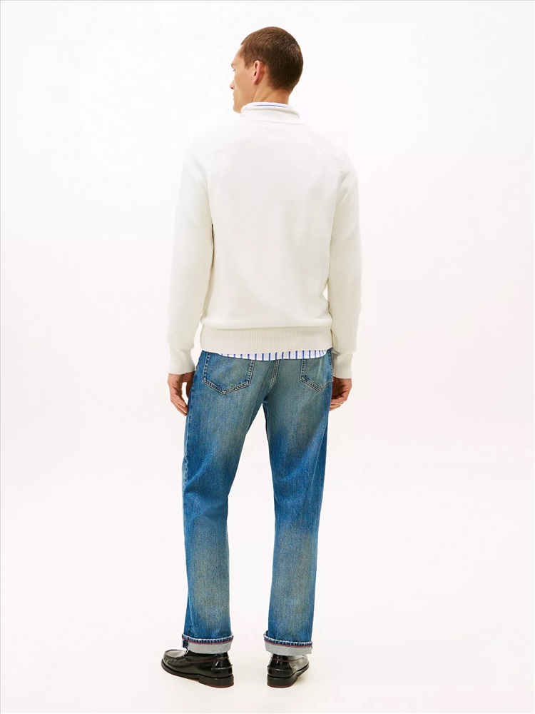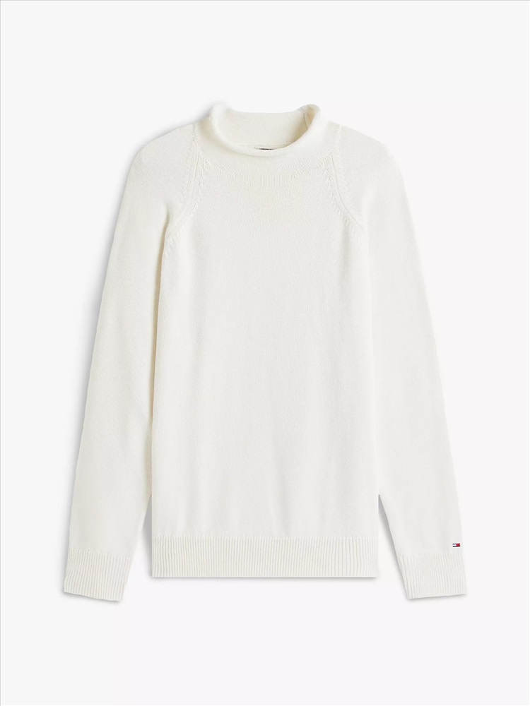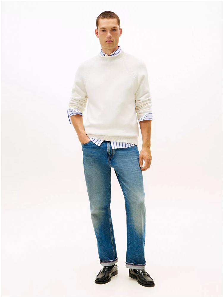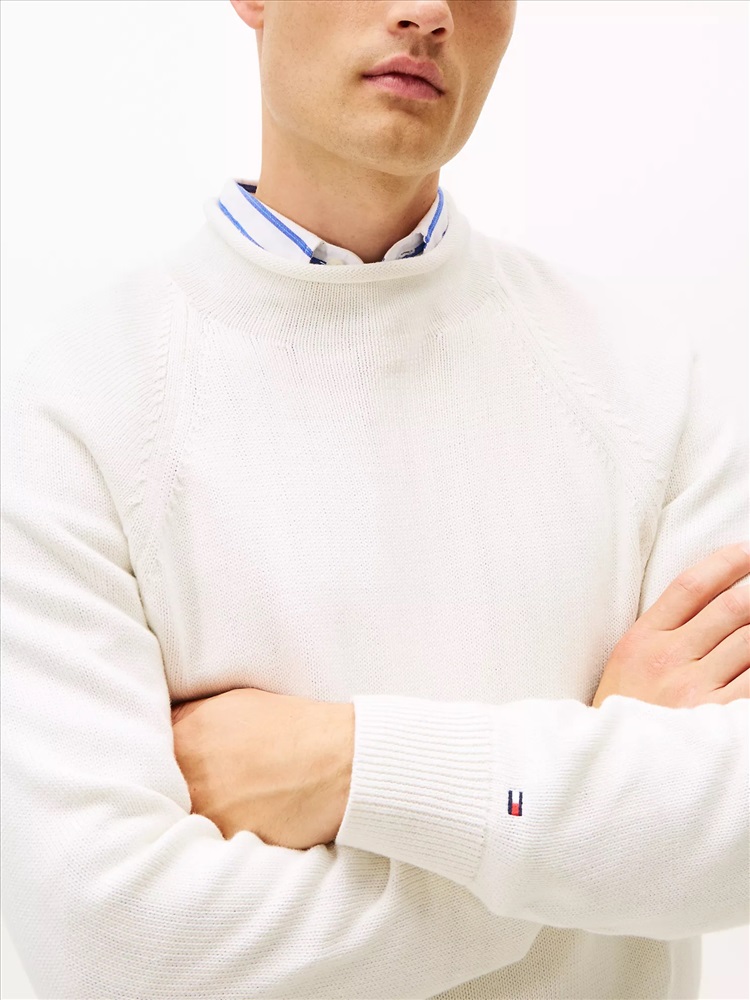 Tommy Hilfiger men's sweater. Defined by an understated rolled neckline and raglan sleeves, this sweater is a wardrobe staple. Made from combed cotton, this piece stays soft, breathable and durable wash after wash.