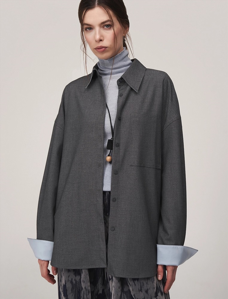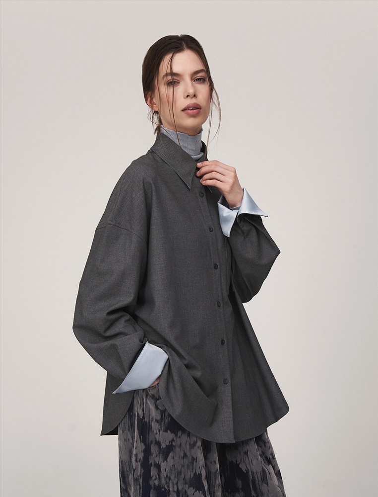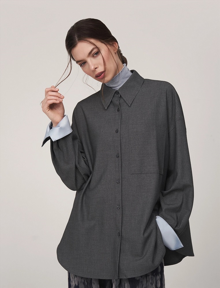 Видео: https-//hassfashion.ru/upload/iblock/5d9/m5ur6vc8ul5o0gl7ye2i4qq0qwq21sy1.mp4 осень-зима А: 40% Хлопок, 25% Вискоза, 18% Лиоцелл, 10% Терилен, 4% Спандекс, 3% Кашемир; В: 100% Ацетатный шел Рубашка регулярного силуэта со спущенной линией плеча и отложным воротником. По передней части изделия планка с застежкой на пуговицы, с левой стороны — декоративный накладной карман. На изнанке воротника и манжет — шелковые контрастные вставки.