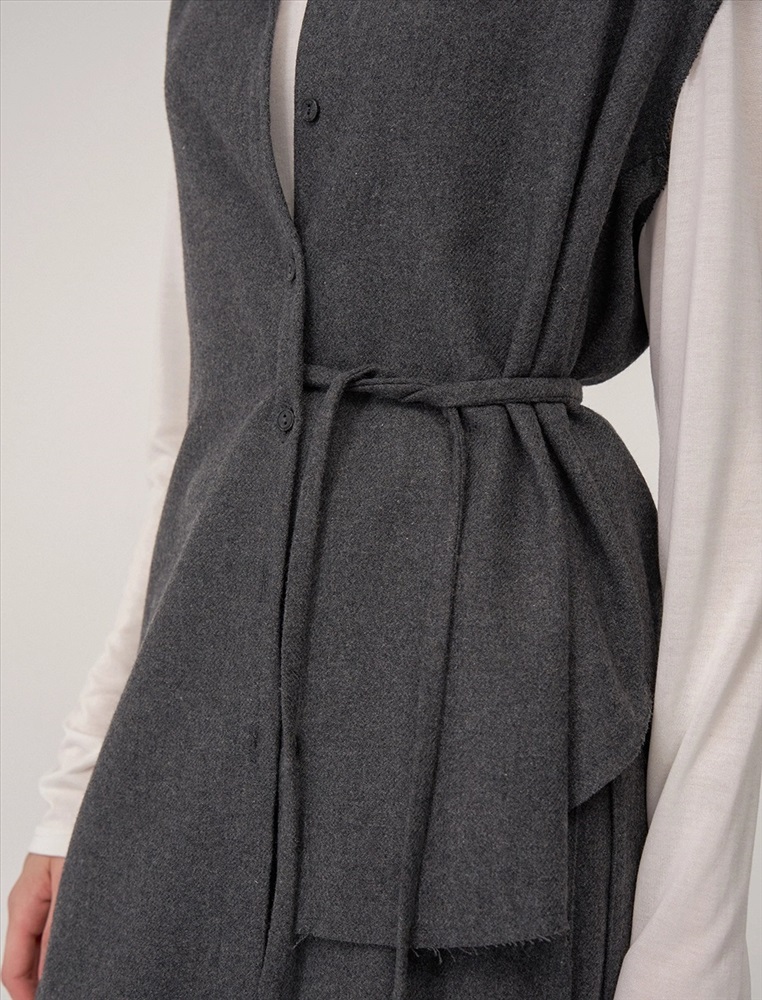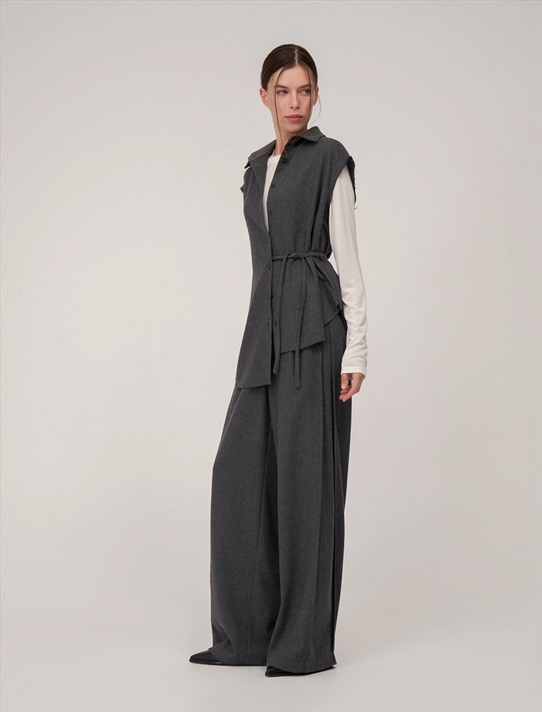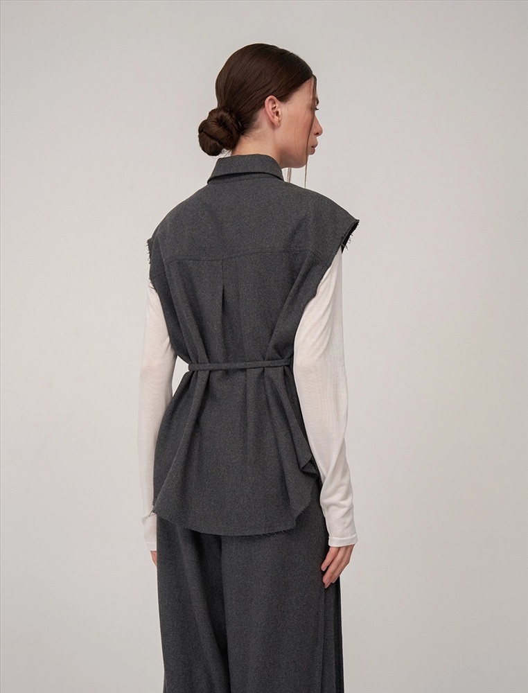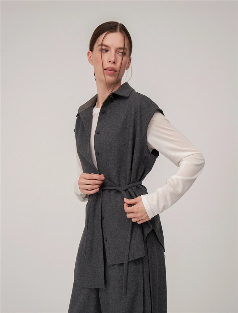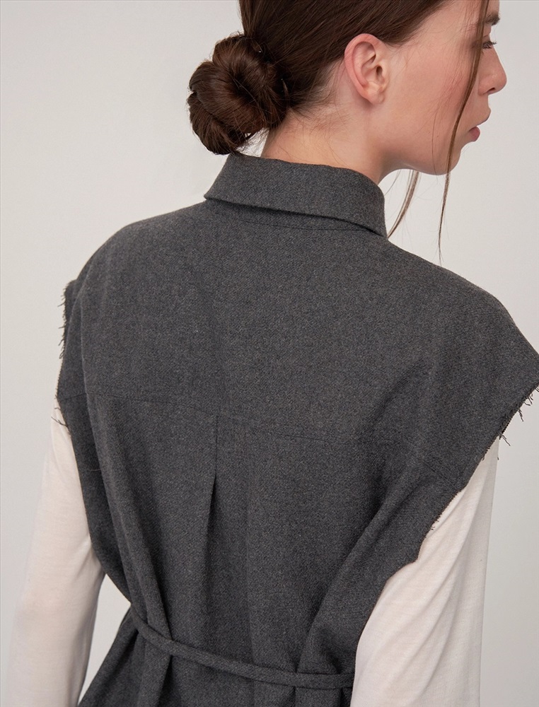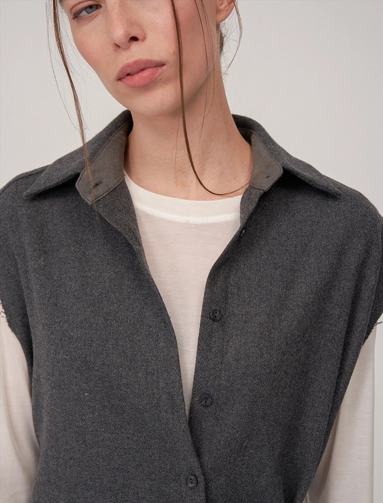 Видео: https-//hassfashion.ru/upload/iblock/65b/2dun6jf8dx0fx2ccu7wtim4xds7yhr6d.mp4 осень-зима 60% Шерсть, 20% Вискоза, 20% Полиэстер Рубашка прямого силуэта с отложным воротником, без рукавов. По передней части изделия — планка с застежкой на пуговицы. Слева, на уровне талии, из планки выходит шнурок из основной ткани. Сзади расположена кокетка и второй шнурок из основной ткани, который втачан в шов сбоку, с правой стороны. Низ рубашки асимметричный. Ткань верха выполнена из шерсти, вискозы и полиэстера, которые обеспечивают тепло, долговечность и комфорт.