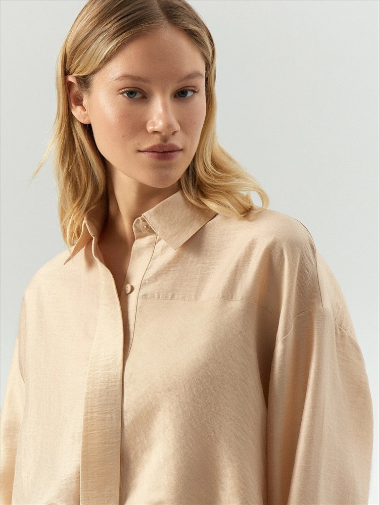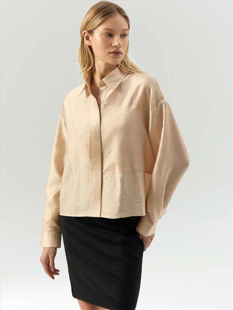 Укороченная свободная рубашка с эффектом асимметричной многослойности. Пуговицы закрывает элегантная планка: она выполнена так, чтобы пуговицы было легко расстегнуть и застенуть. На спинке есть кокетка. Рубашка сделана из комфортного материала с высоким содержанием тенсела: идеально на лето и межсезонье. Подходит в качестве второго слоя. Сочетается с любым денимом и не только. Бежевый цвет вписывает вещь в любой гардероб.