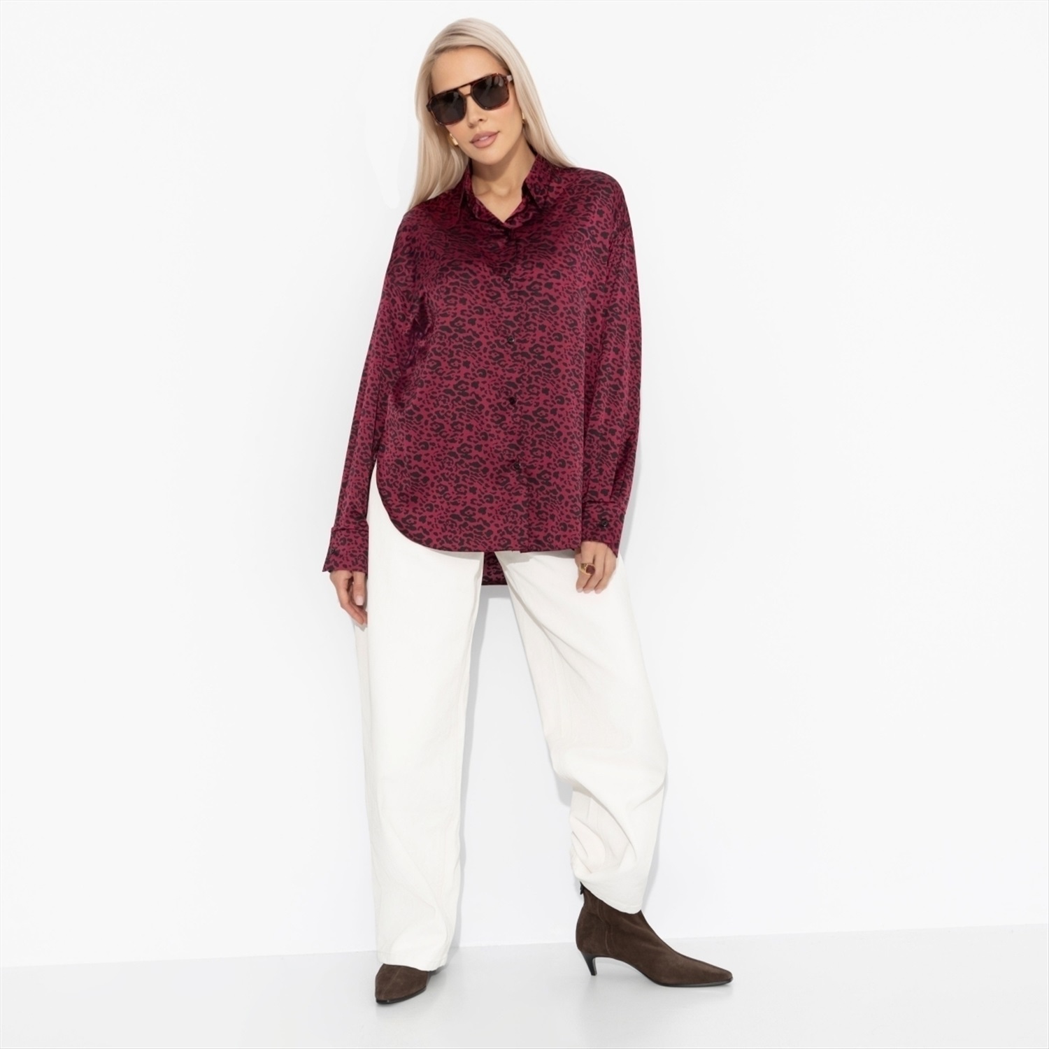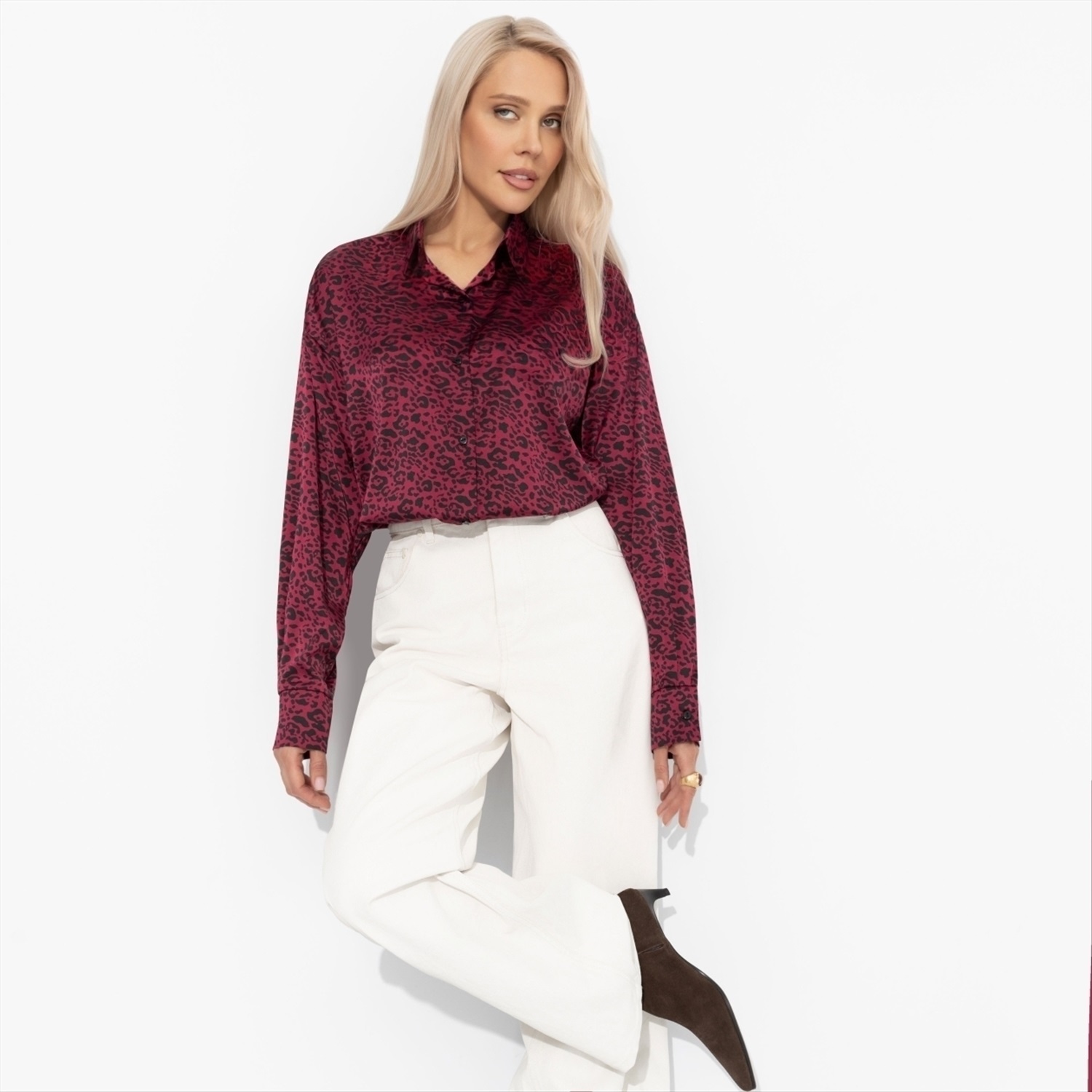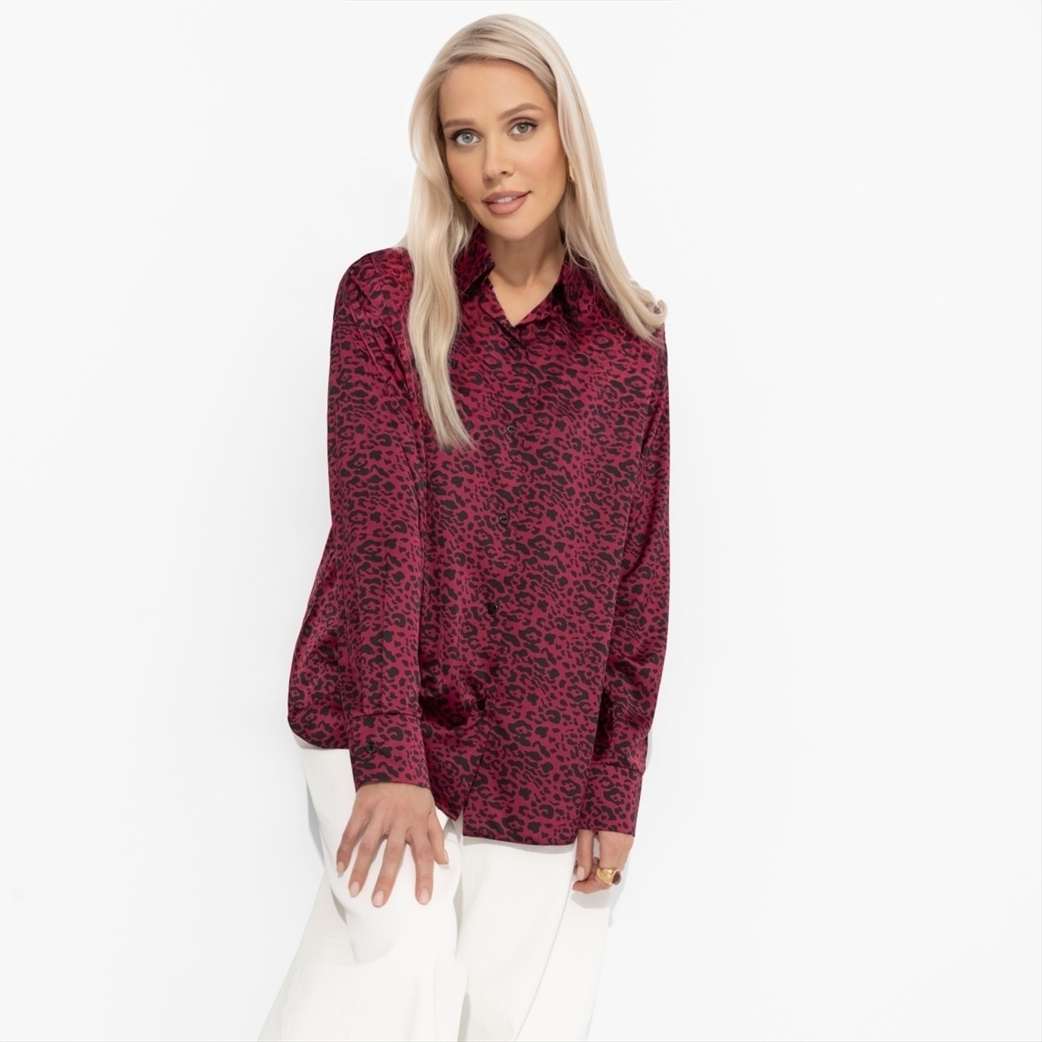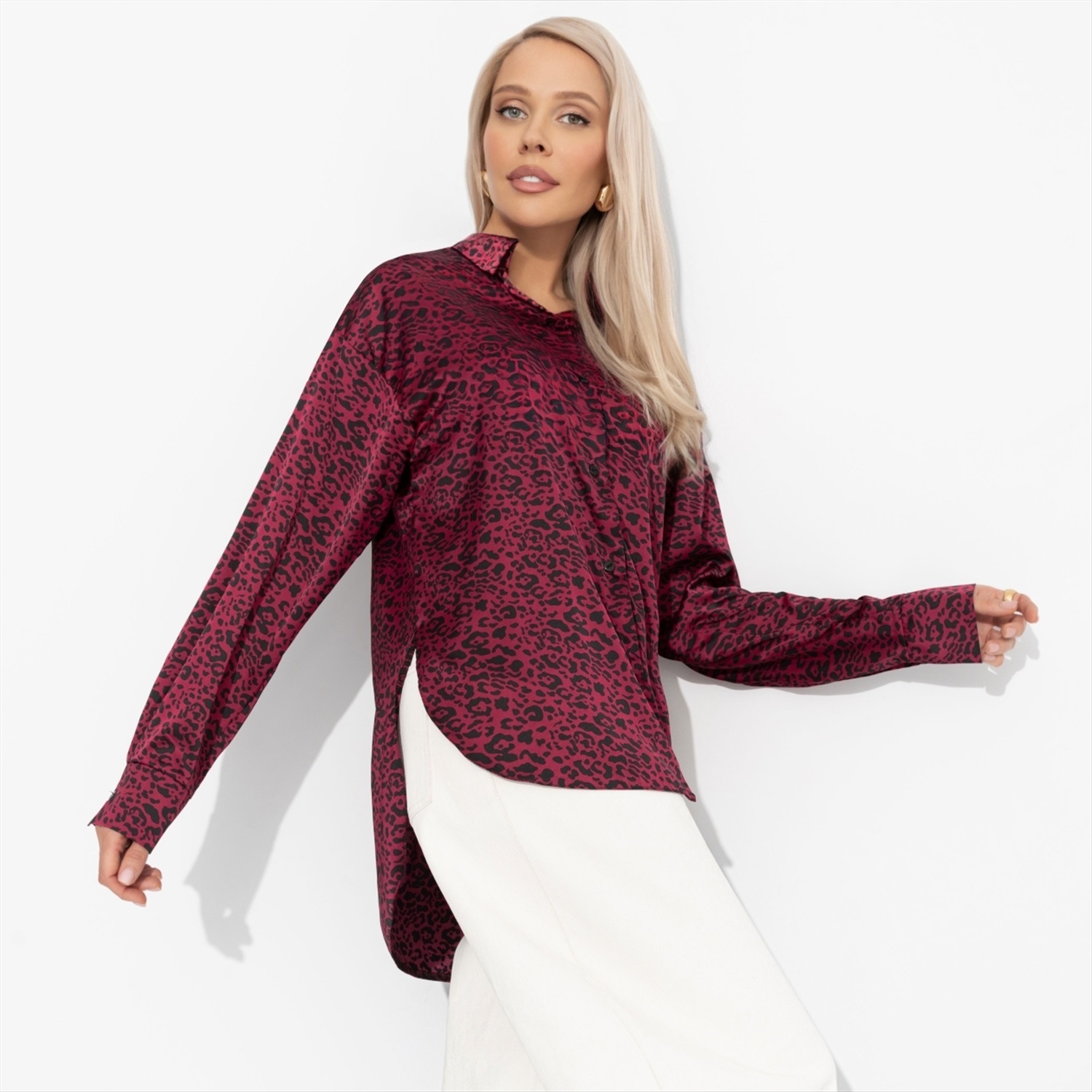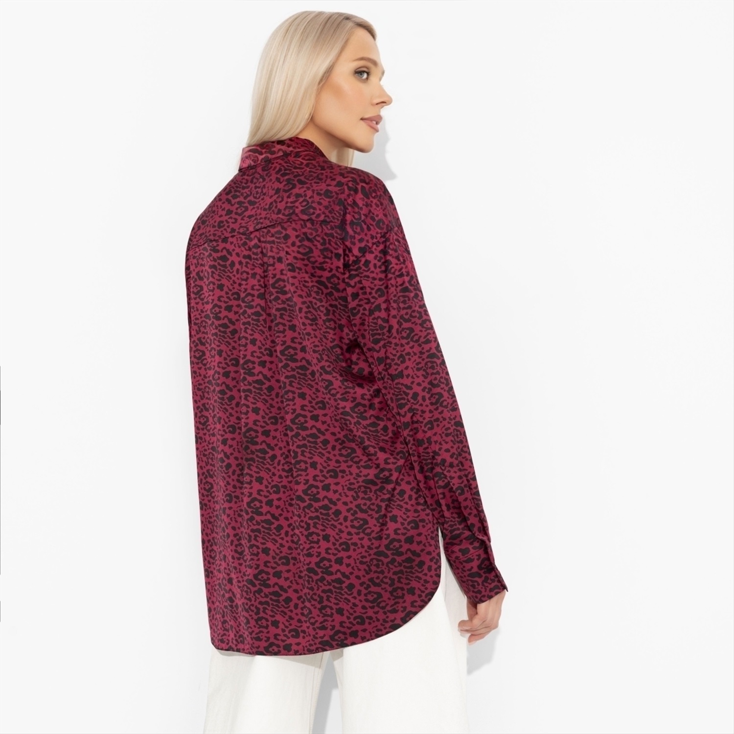 Состав: Шёлк «армани» (100% полиэстер) Плотность ткани: Тонкая Тип ткани: Текстиль Вид застежки: Пуговица/-ы Карманы: Нет Основной цвет ткани: Бордовый Отрезная талия: Нет Подклад: Нет Резинка по талии: Нет Рисунок/раппорт: Каждое изделие уникально из-за расположения рисунка на ткани Сезон: Круглогодичный Силуэт: Прямой Стиль: Повседневный Параметры модели на фото: