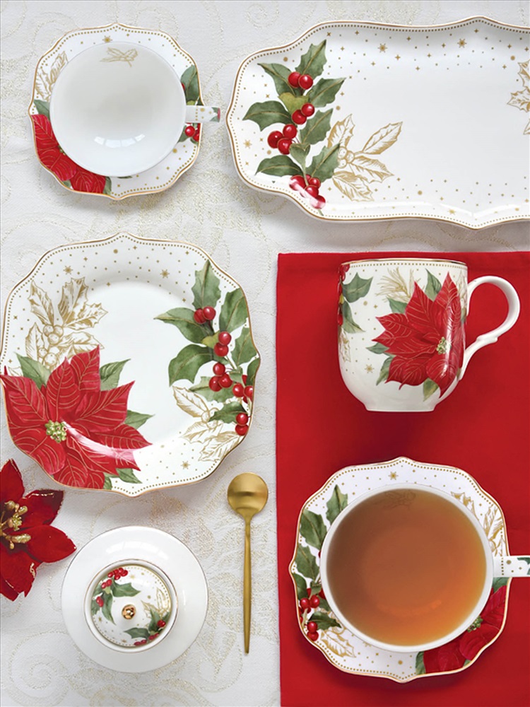 Сахарница, 0,25 л, Пуансеттия и ягоды