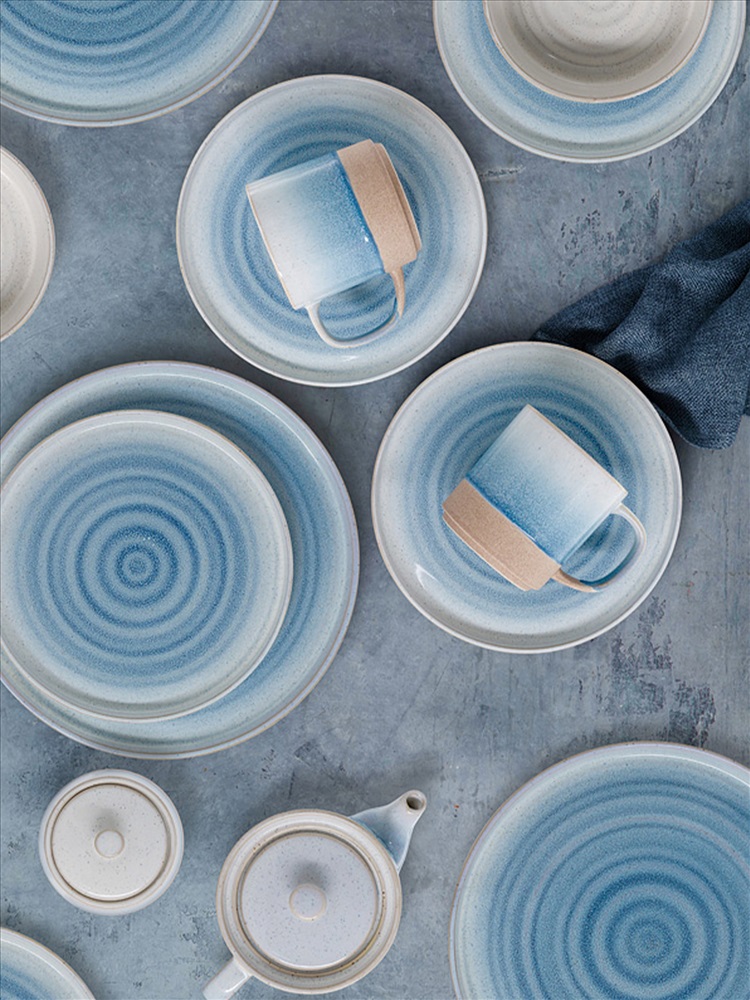 Сахарница, 9,5 см, 260 мл, керамика, бежево-голубая, в крапинку, Azurro. Материал: керамика каменная. Мыть теплой водой с применением мягких  моющих средств. Можно использовать в микроволновой печи и мыть в посудомоечной машине.