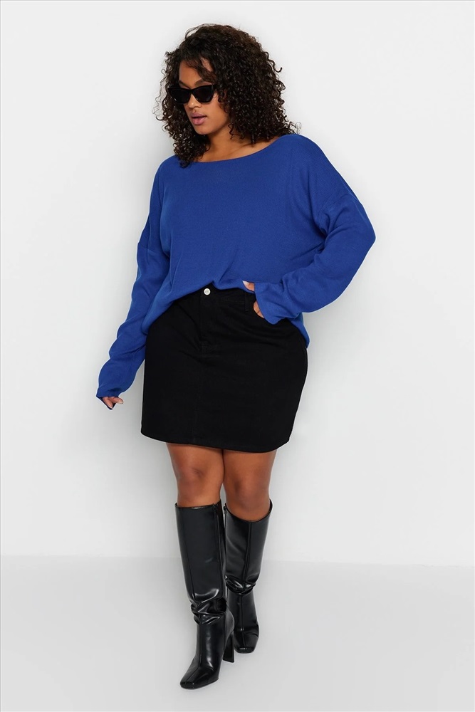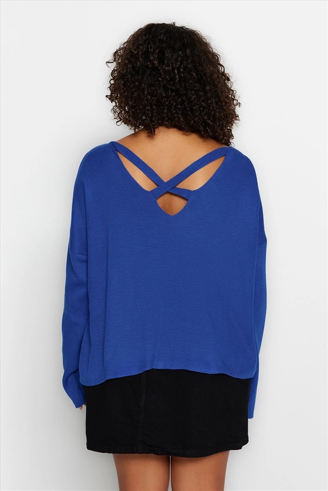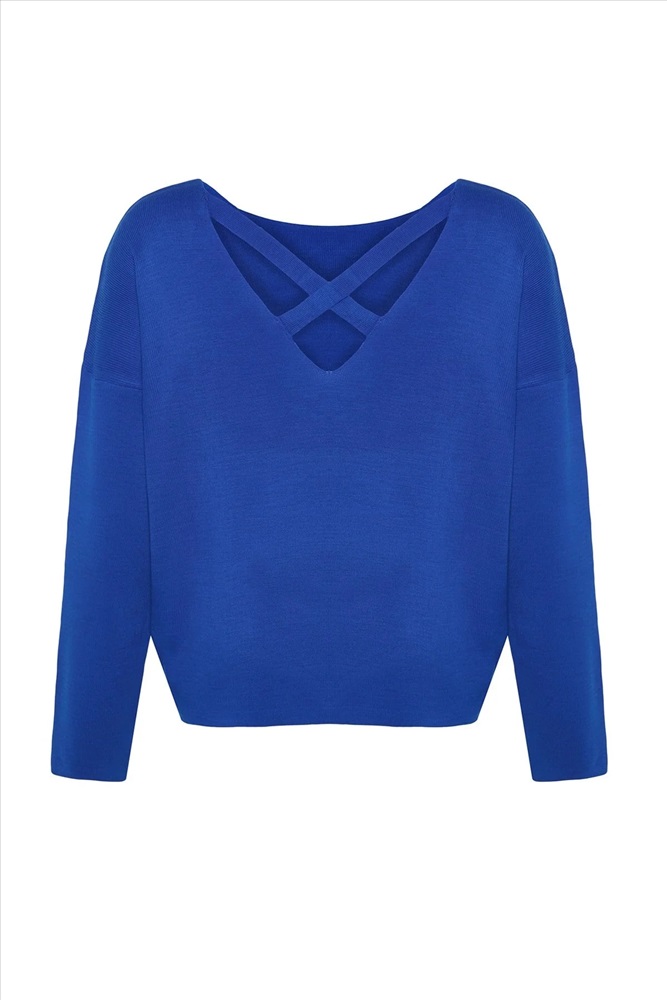 Saks Sırtı Çapraz Bant Detaylı Triko Kazak TBBAW23AN00021
