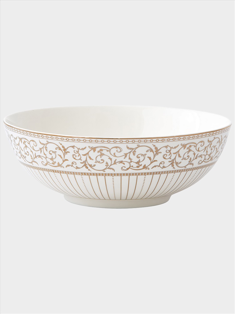 Салатник, 23х8 см, 1,7 л, фарфор N, белый, с золотистым орнаментом, Golden. Материал: фарфор New Bone China. Мыть теплой водой с применением мягких моющих средств. Не использовать в СВЧ и в посудомоечной машине.